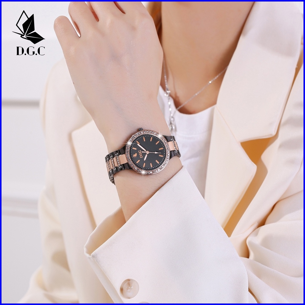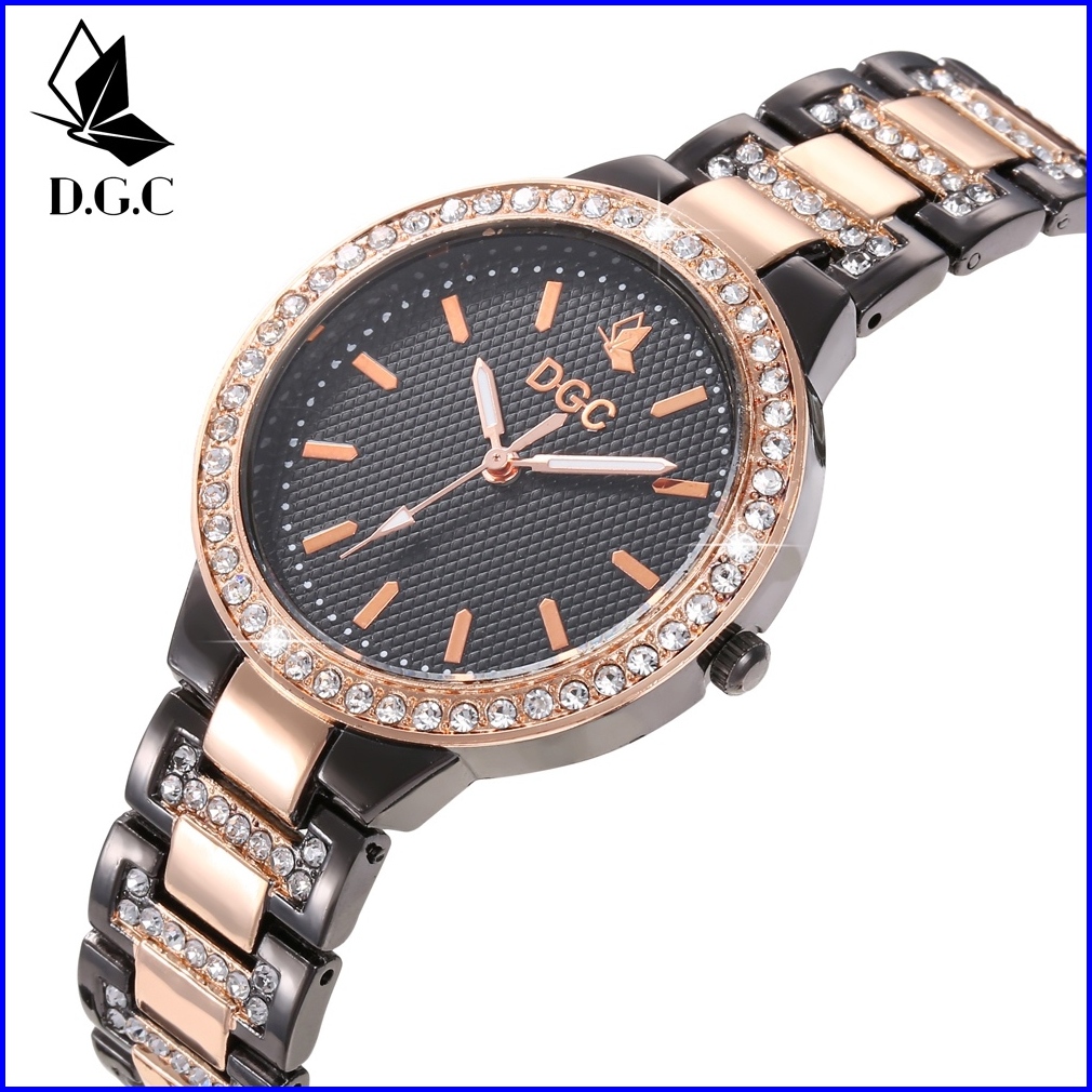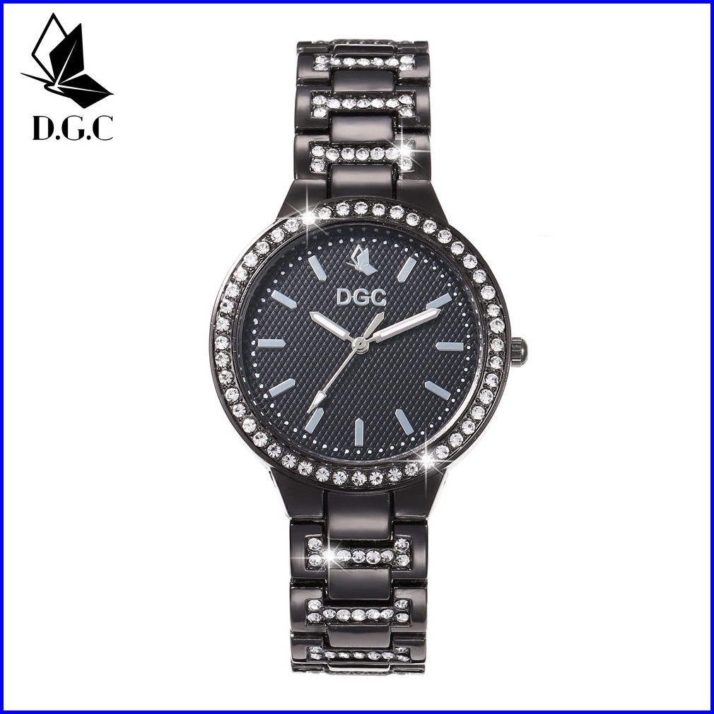 Dgccod Jam Tangan Wanita Free Box Batera Rantai Baja Tahan Karat Berlian Bulat Mewah Model Berlian Kelas Atas Modis Gadi