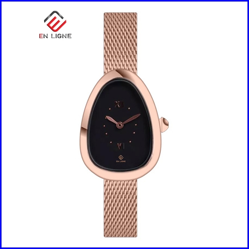 En Ligne - Jam Tangan Wanita Quartz Model Kecil Oval Stainless Tali Rantai Pasir El5799