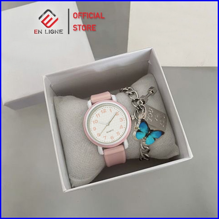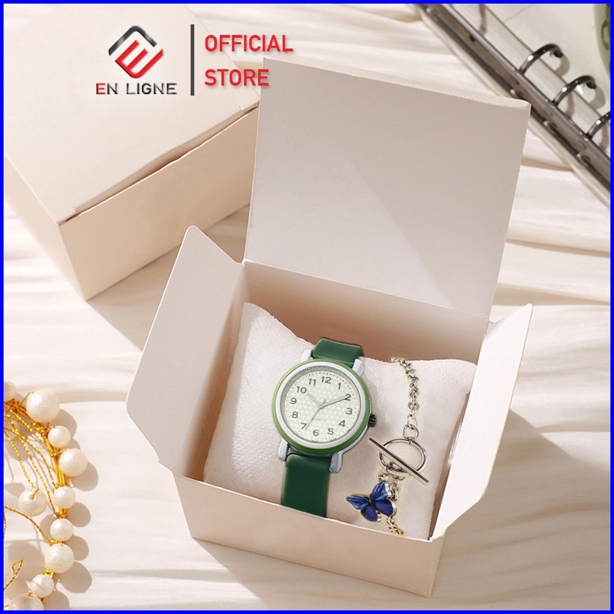 En Ligne - Jam Tangan Wanita Anak Remaja Youth Resin Jelly Warna Pastel Set Gelang Cantik El555rsn