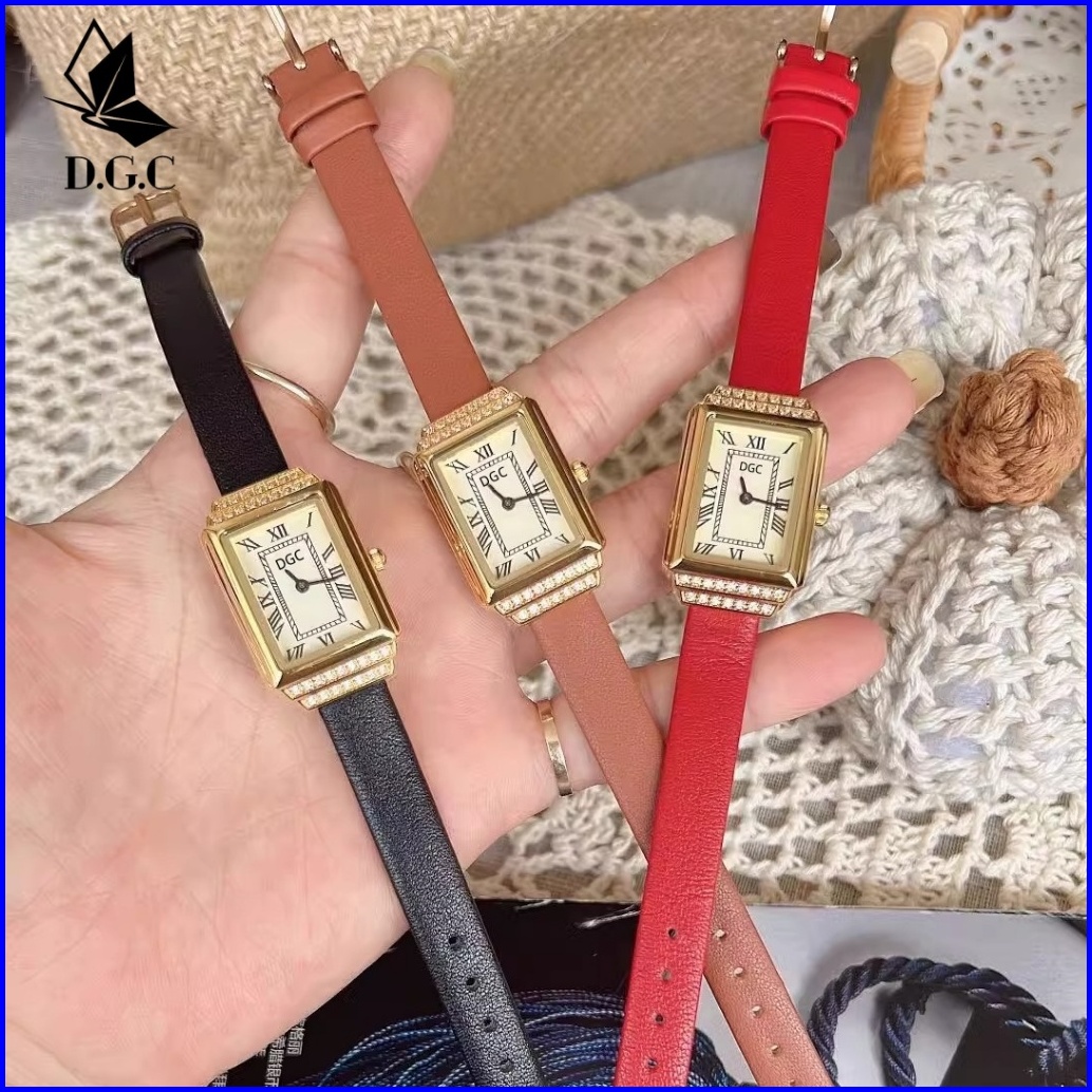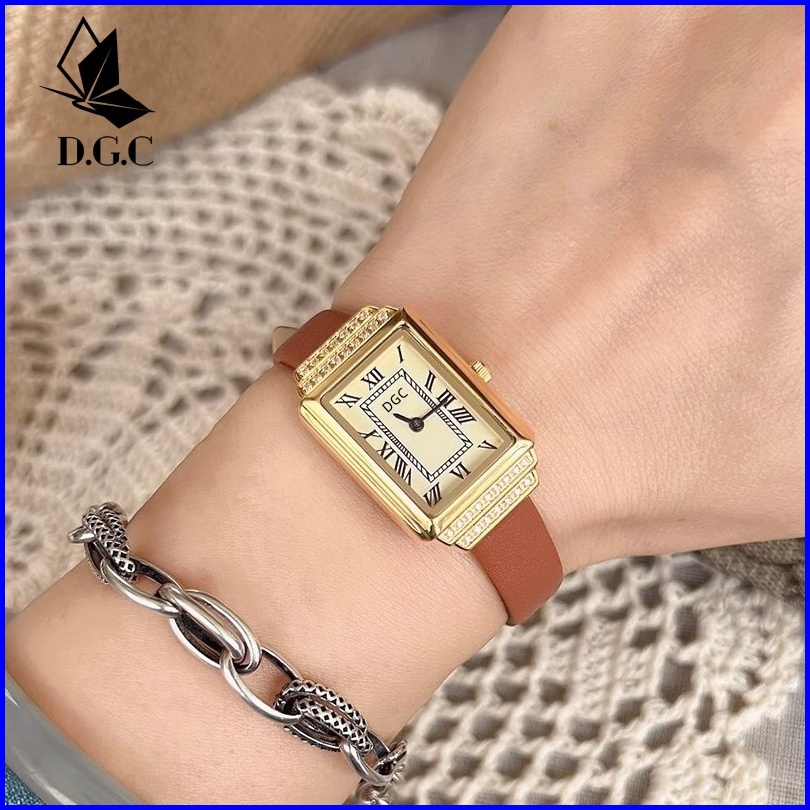 Dgc 10383 Jam Tangan Wanita Quartz Dial Kotak Kecil Casual Retro Untuk Wanita Fashion Free Baterai