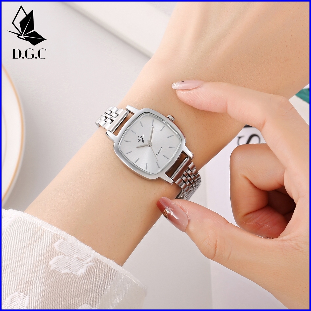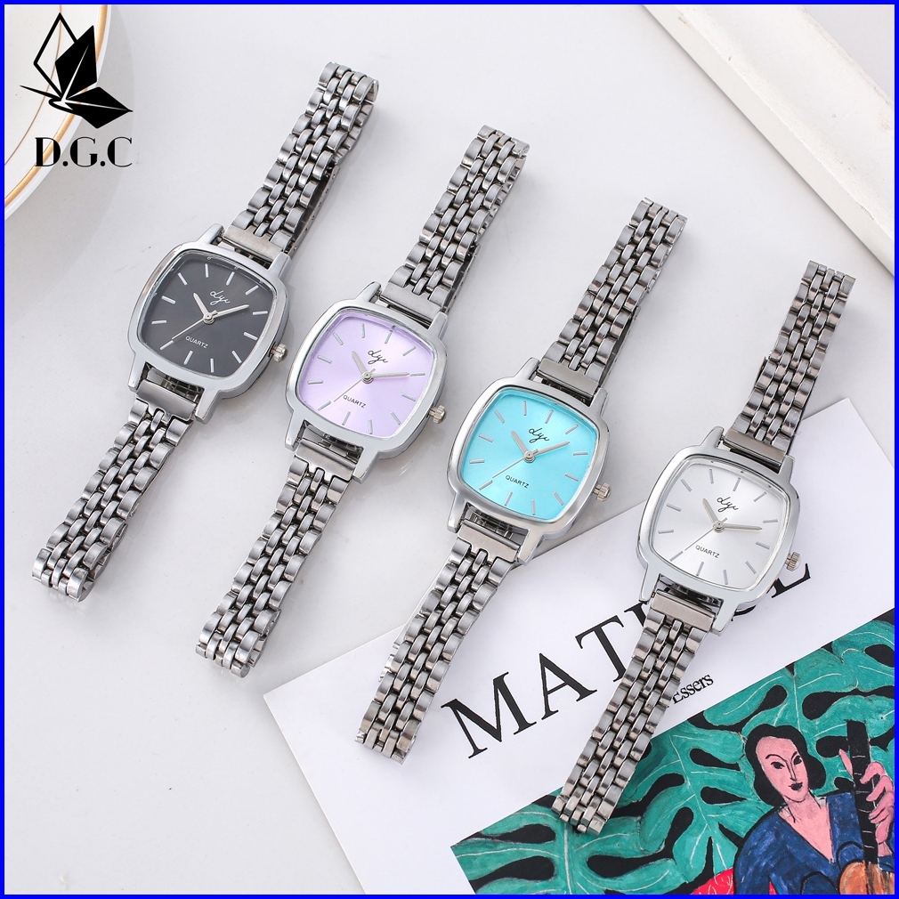Dgc It1001 Jam Tangan Wanita Alloy Quartz Persegi Rantai Stainless Steel Fashion Murid Santai