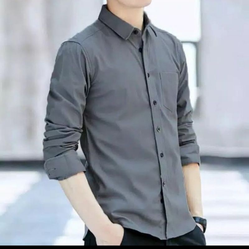 (Gratis Ongkir) Kemeja Cowok polos lengan panjang slimfit hem pria kantor hitam navy putih