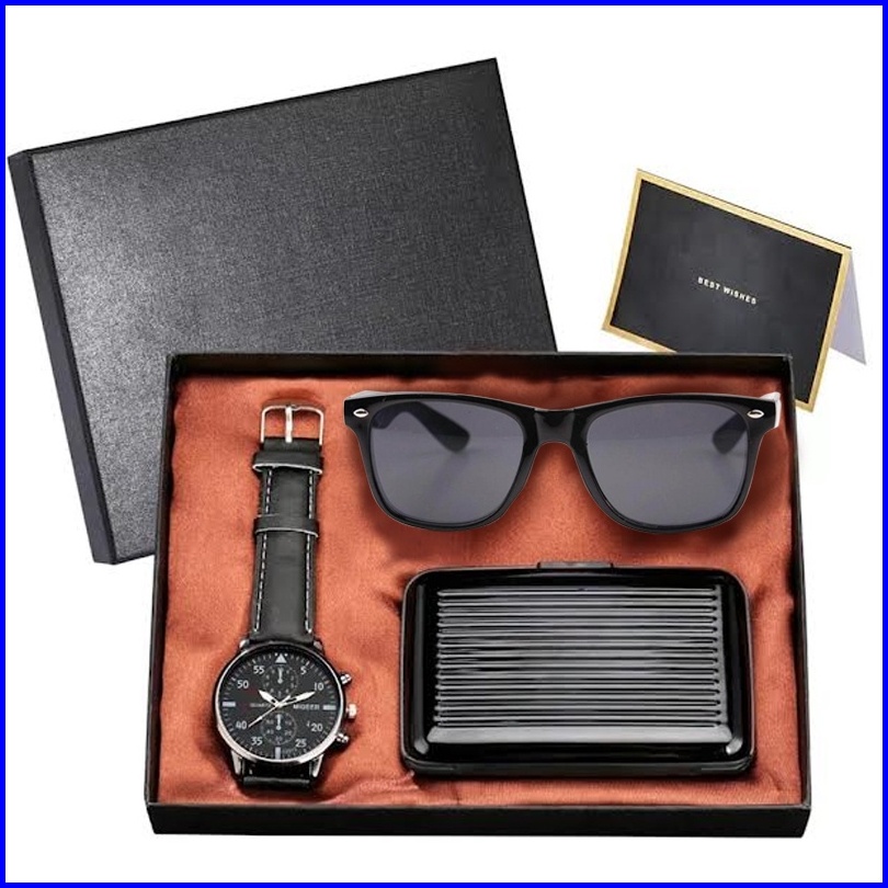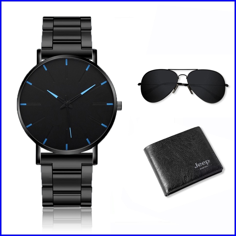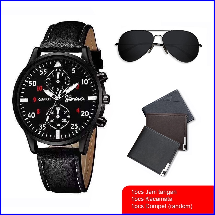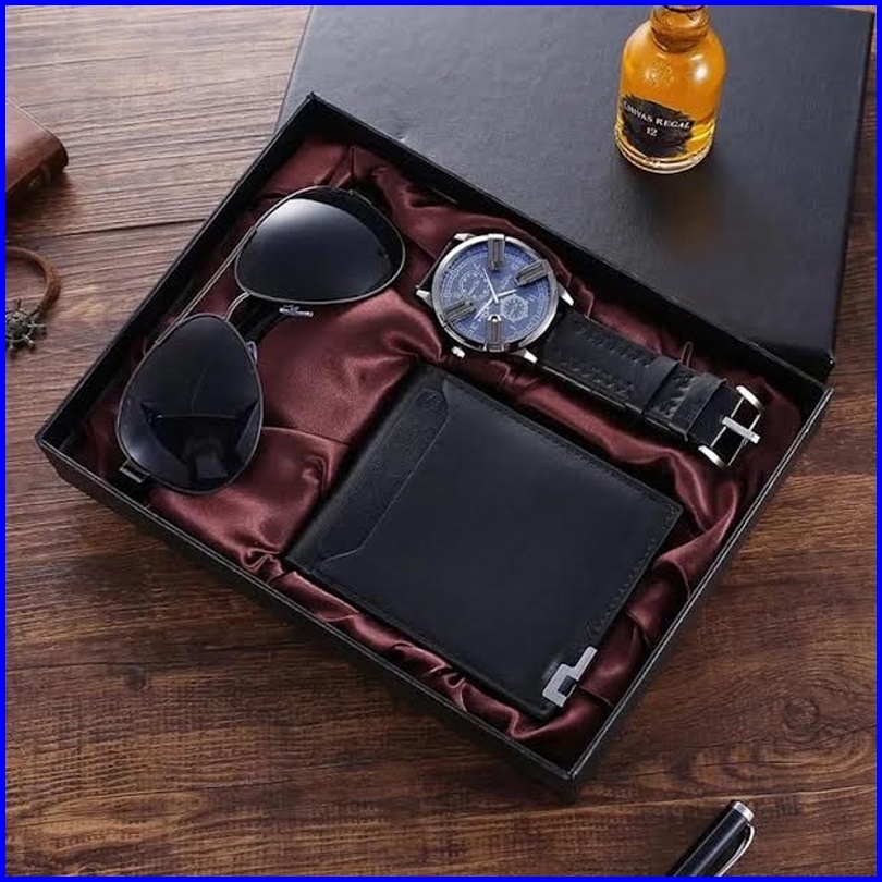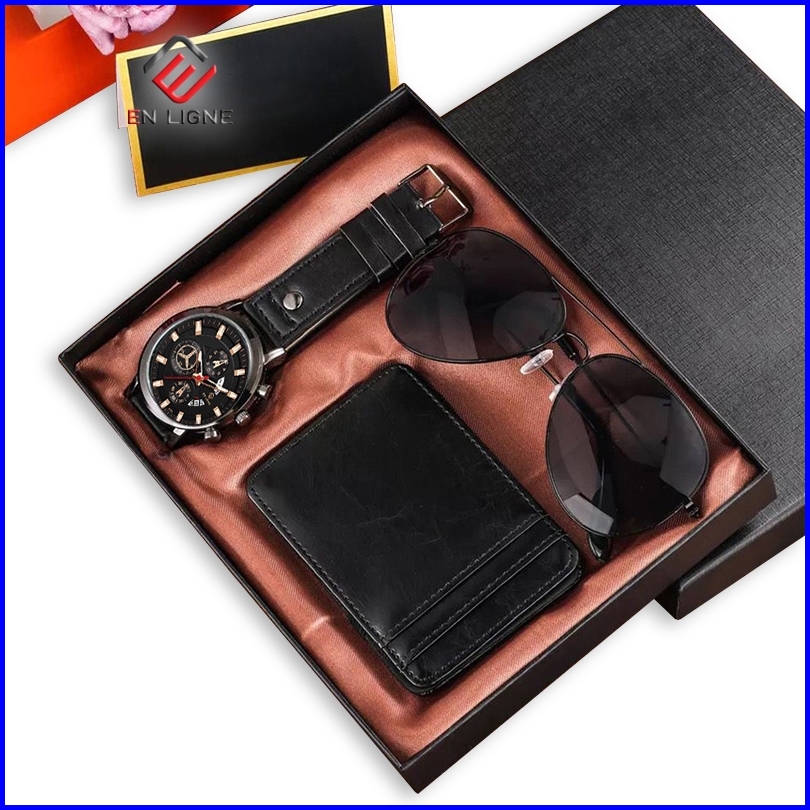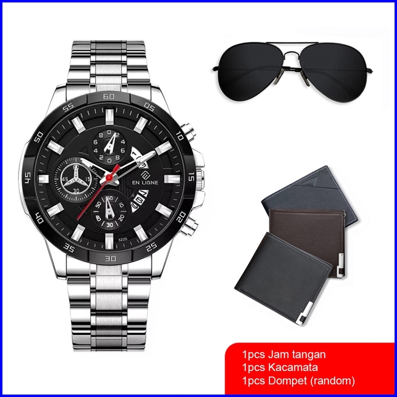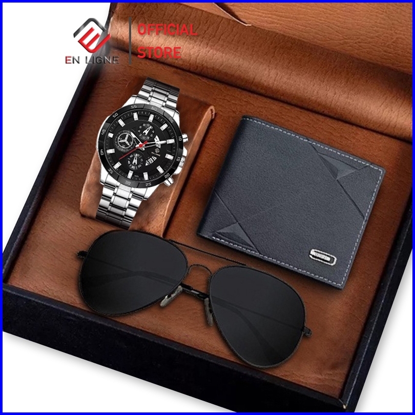 En Ligne - Jam Tangan Pria Set - Jam Tangan Kado - Hampers Jam Tangan - Jam Tangan Dompet Kacamata Set - Hampers Lebaran