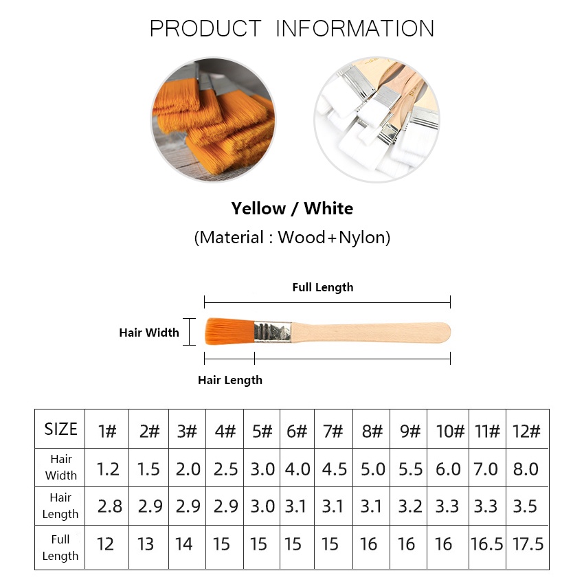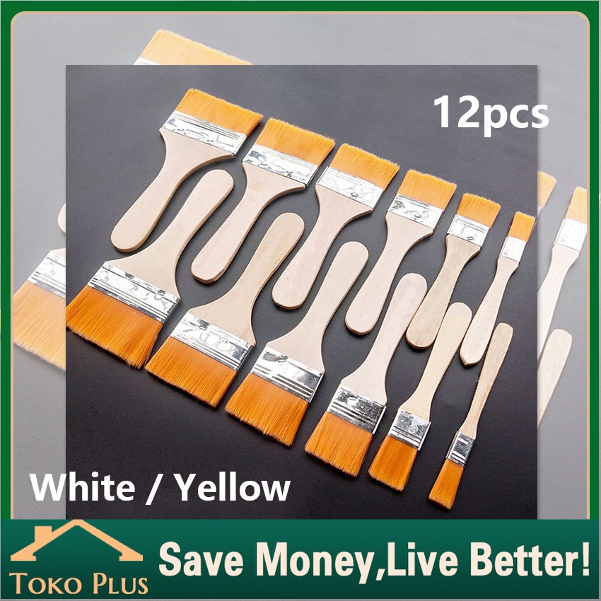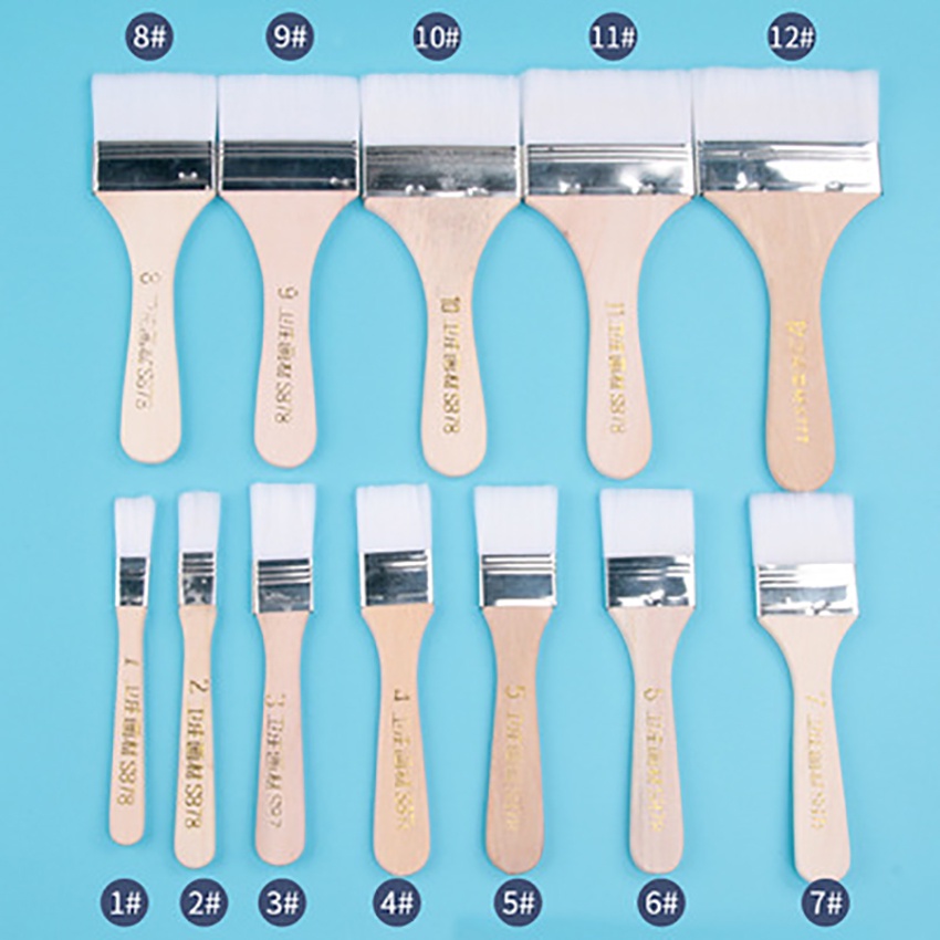 12Pcs Kuas Lukis Besar Lebar Set - No.1 - 12 - Kuas Cat Gagang Kayu Tebal Halus - Kuas Lukis Bali Artist Nylon Flat Art