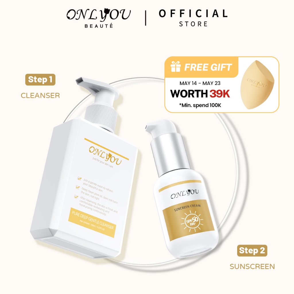 ONLYOU Paket Sunscreen Cream SPF50+ PA+ kosmetik wajah UV sunblock make up sepaket Onlyou Facial wash For All Skin Type