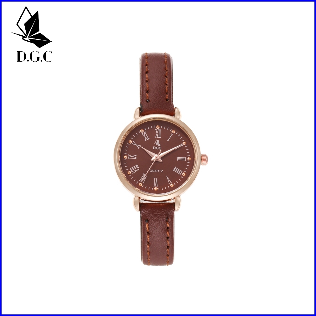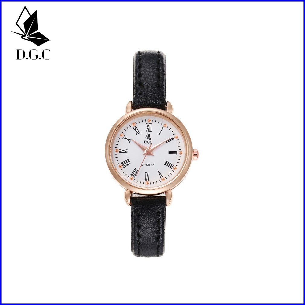 Dgc 10301 Jam Tangan Quartz Strap Pu Analog Casual Gaya Retro Wanita Bulat Watch Kecil Fashion