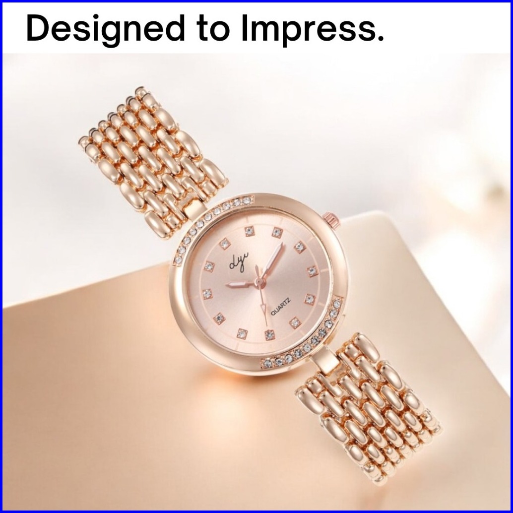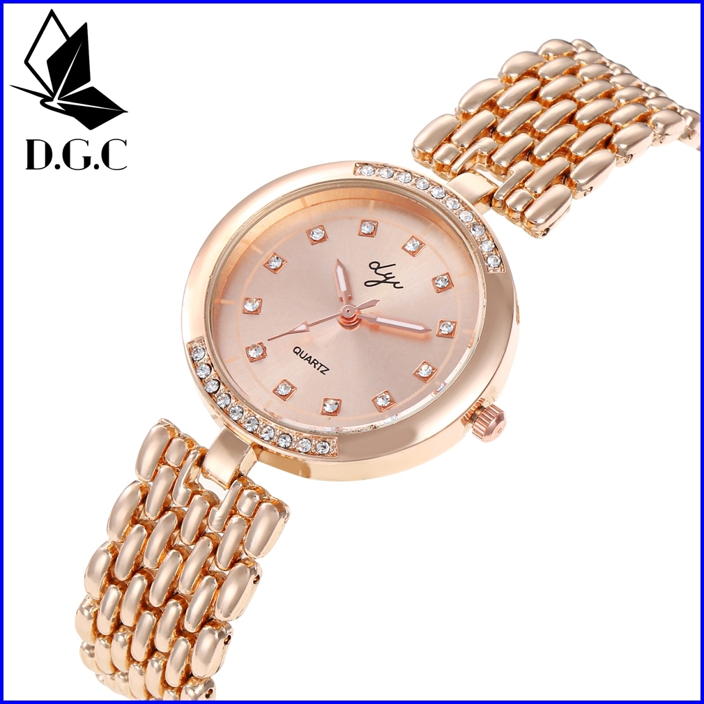 Dgc 30118 Jam Tangan Wanita Rose Analog Quartz Dengan Strap Stainless Steel Fashion Dial Bulat Free Baterai