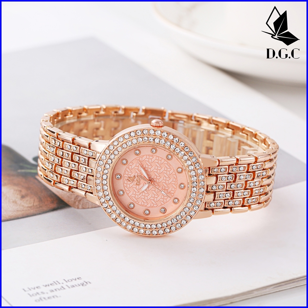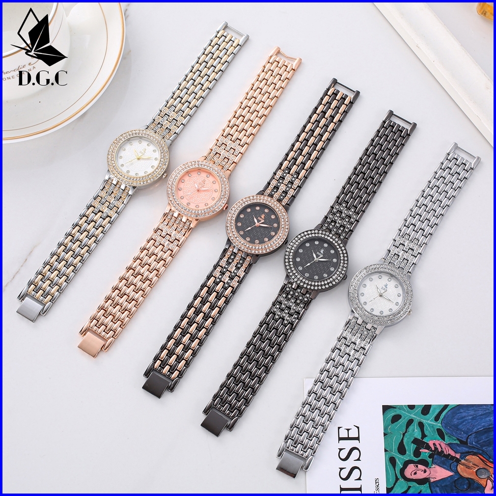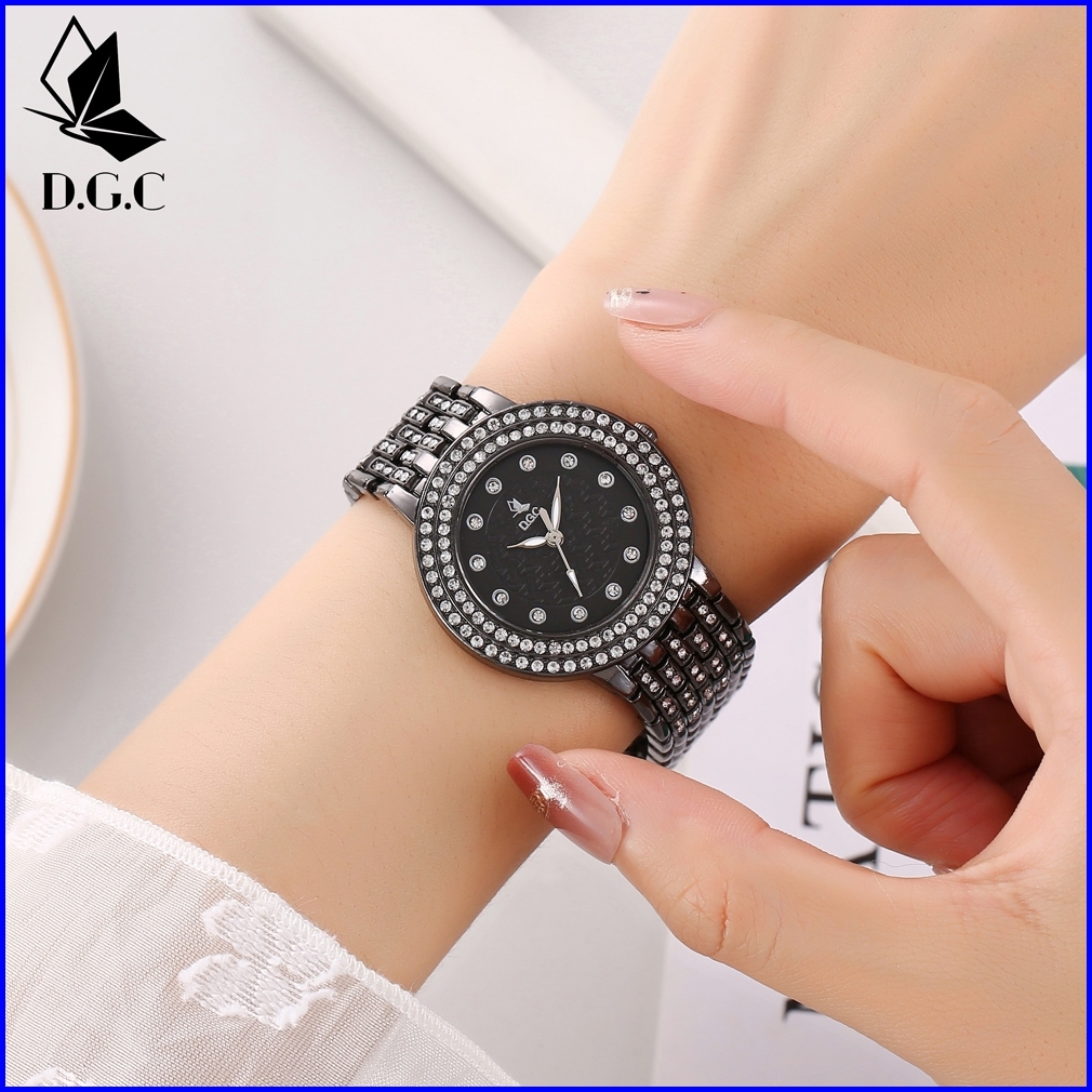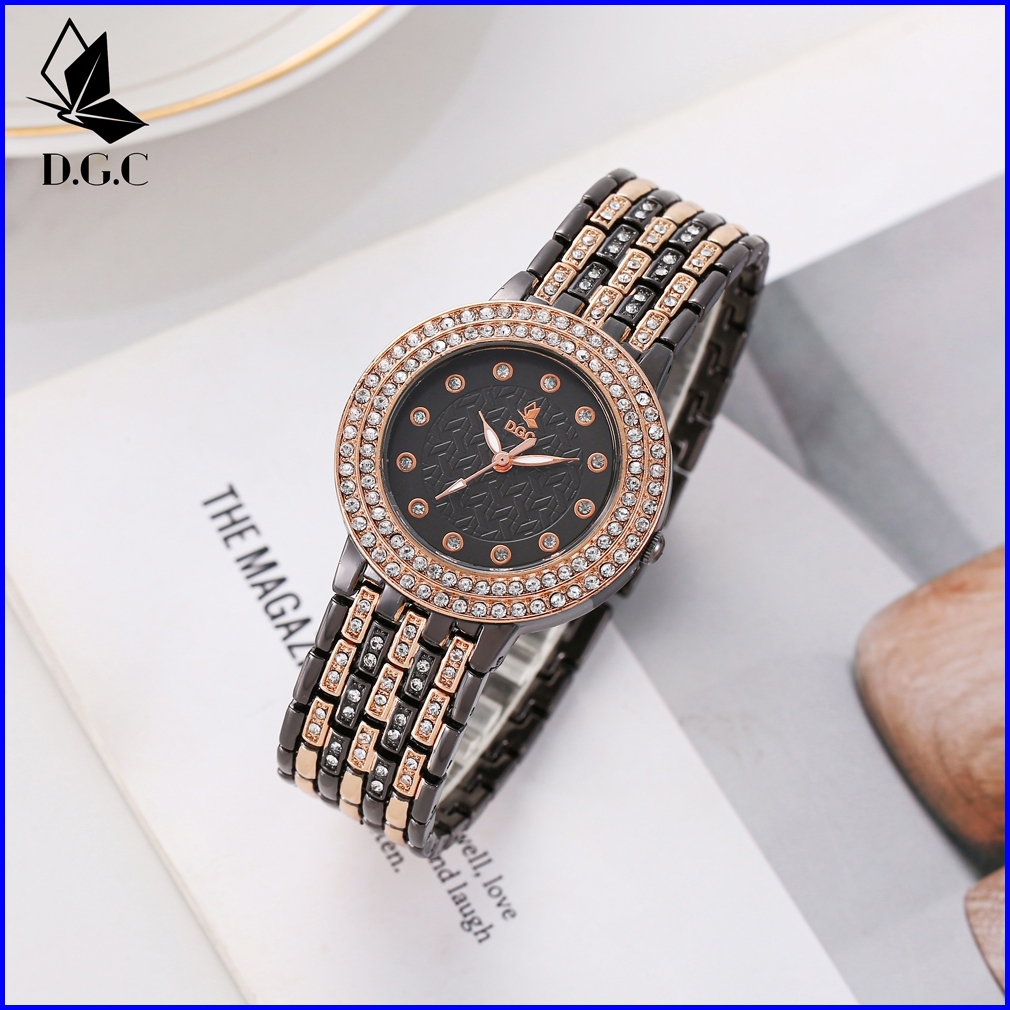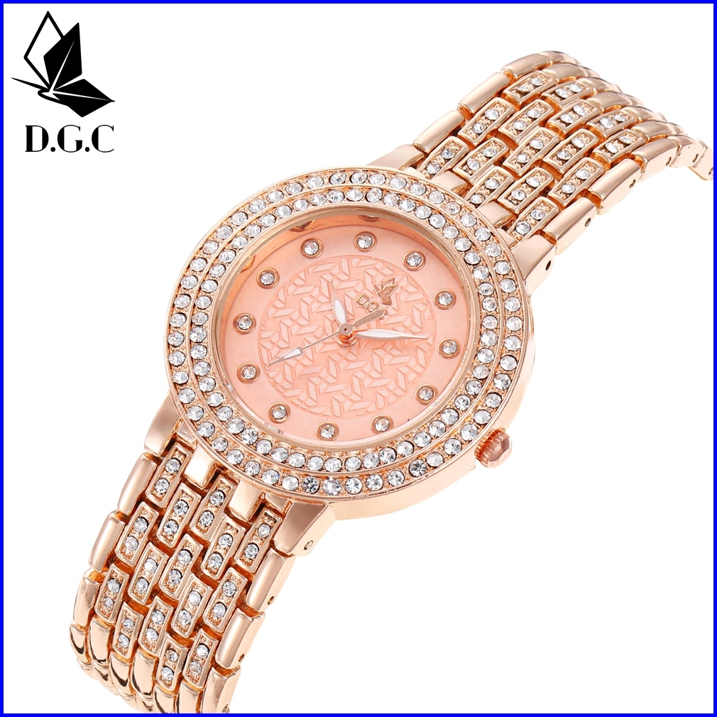 Dgc G107 Jam Tangan Wanita Alloy Quartz Fashion Diamond Bulat Rantai Stainless Steel