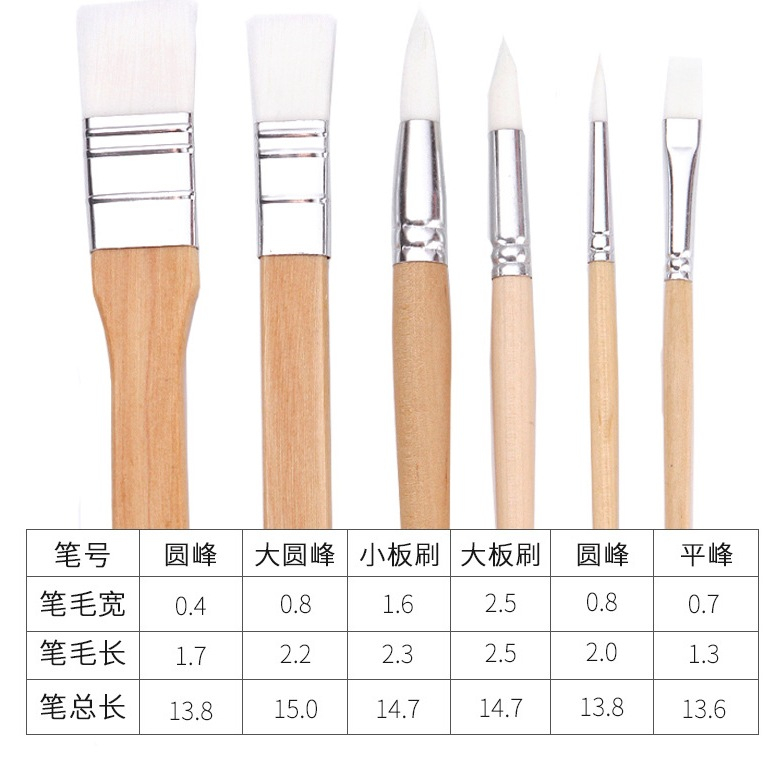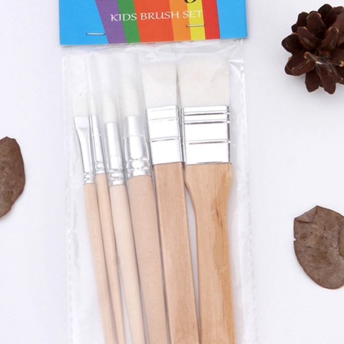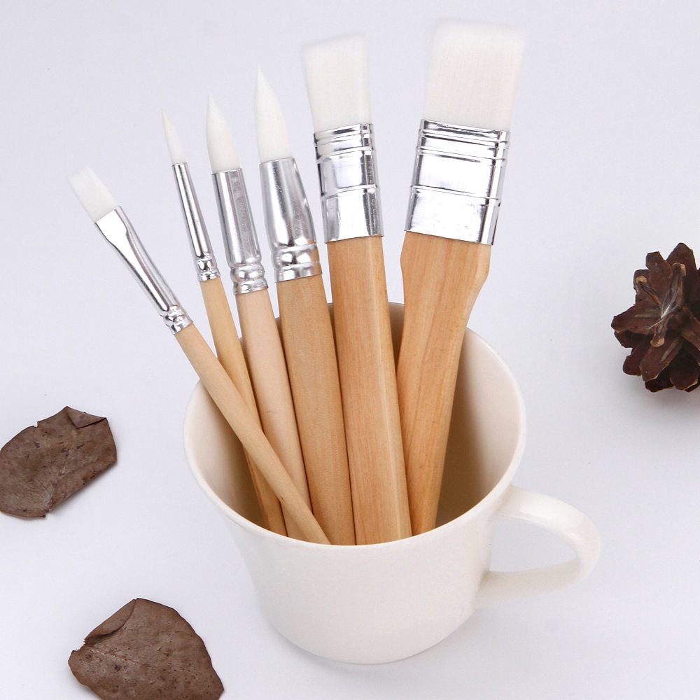 [ 6 PC NYLON BRUSH ] 6 Set Kuas Kayu Dengan Bulu Nilon Berwarna Putih Wooden Handle Paint Brush kuas lukis 1 set / Kuas