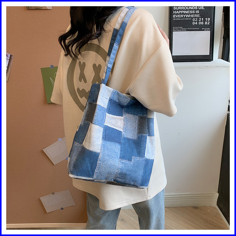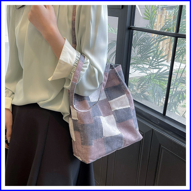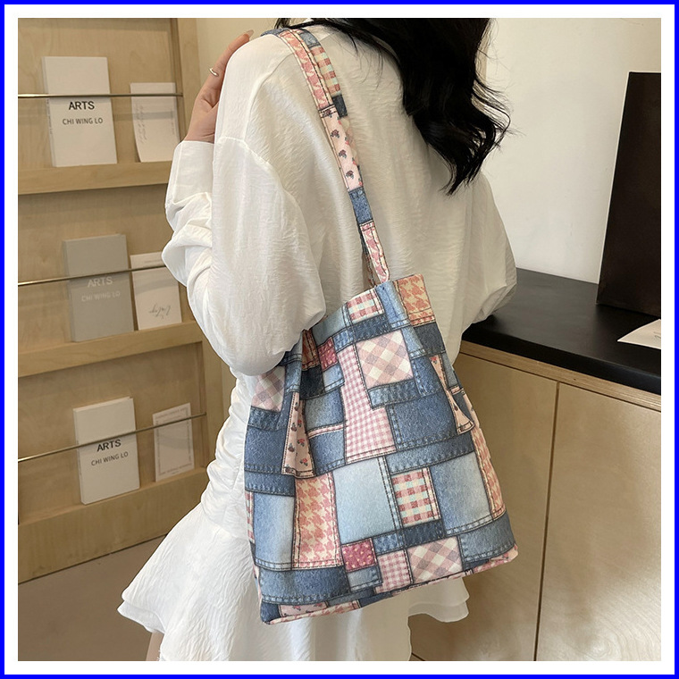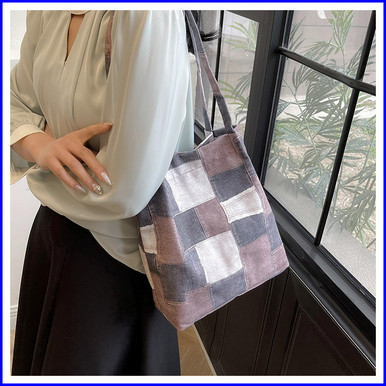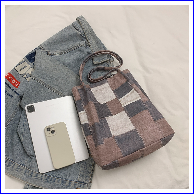 Hayden Naoki Bag Tas Kuliah Tote Bag Motif Kain Abstrak Kotak Kotak Gaya Korea Fashionable Terbaru - Hyb3p