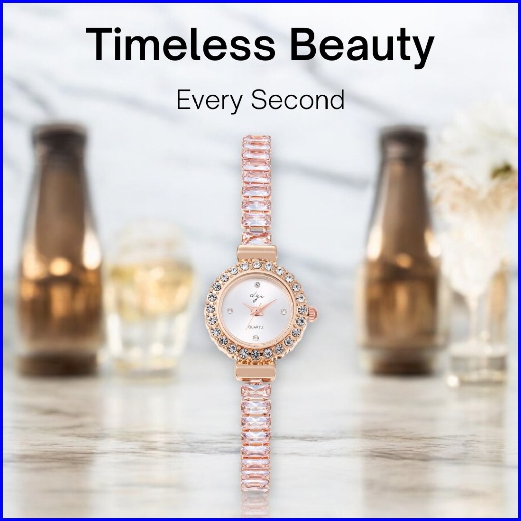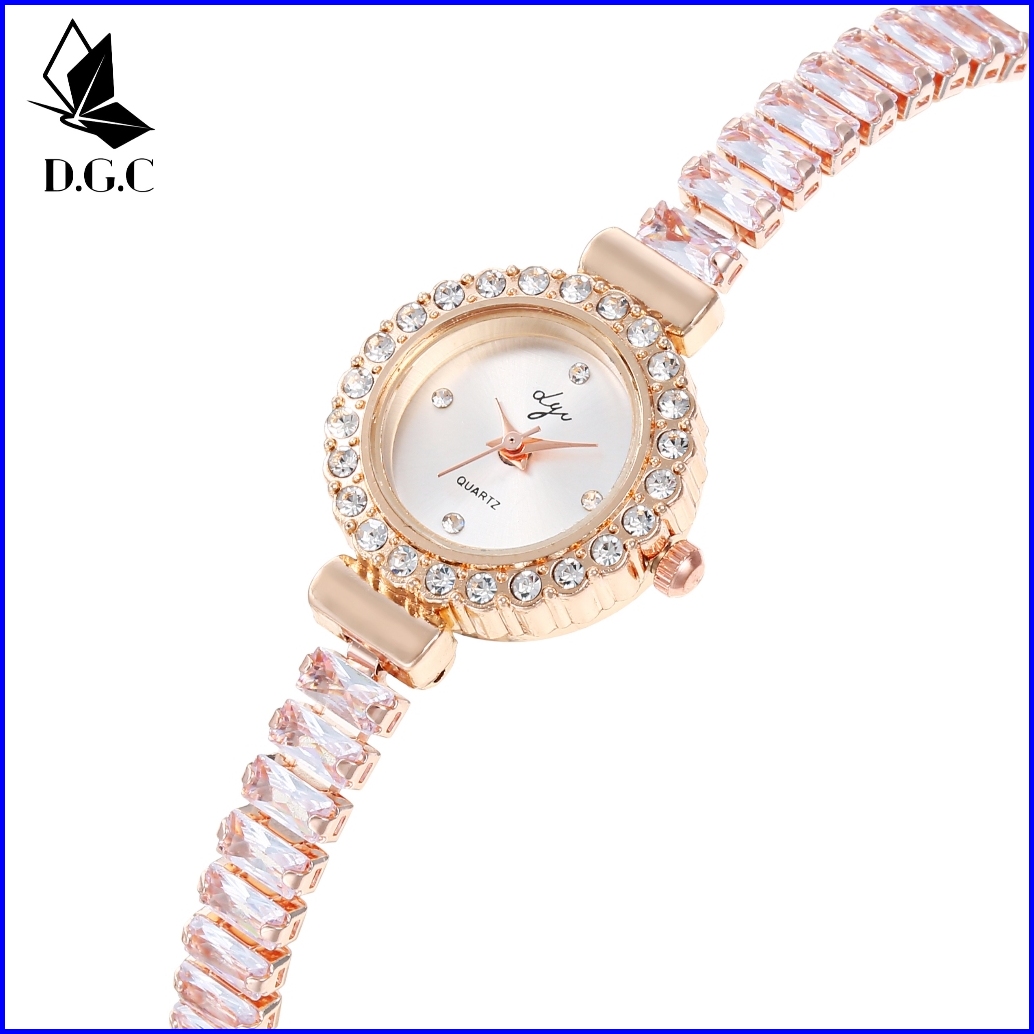 Dgc 10355 Jam Tangan Gelang Wanita Rantai Silver Rose Cewek Elegan Mewah Korea Berlian Diamond Bulat Bahan Strap Analog