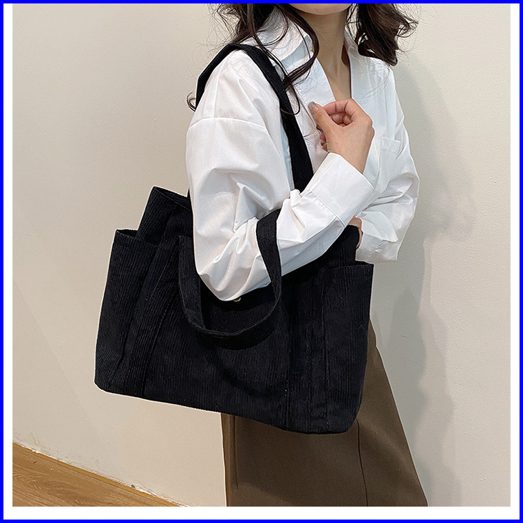 Hayden Soleil Bag Tote Bag Korduroi Polos Fashionable Wanita Korea Tas Jinjing Muat Laptop Elegan - Hyb3j
