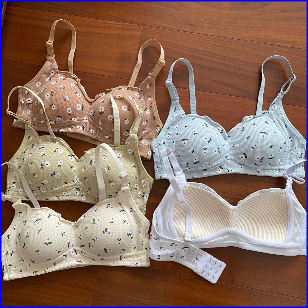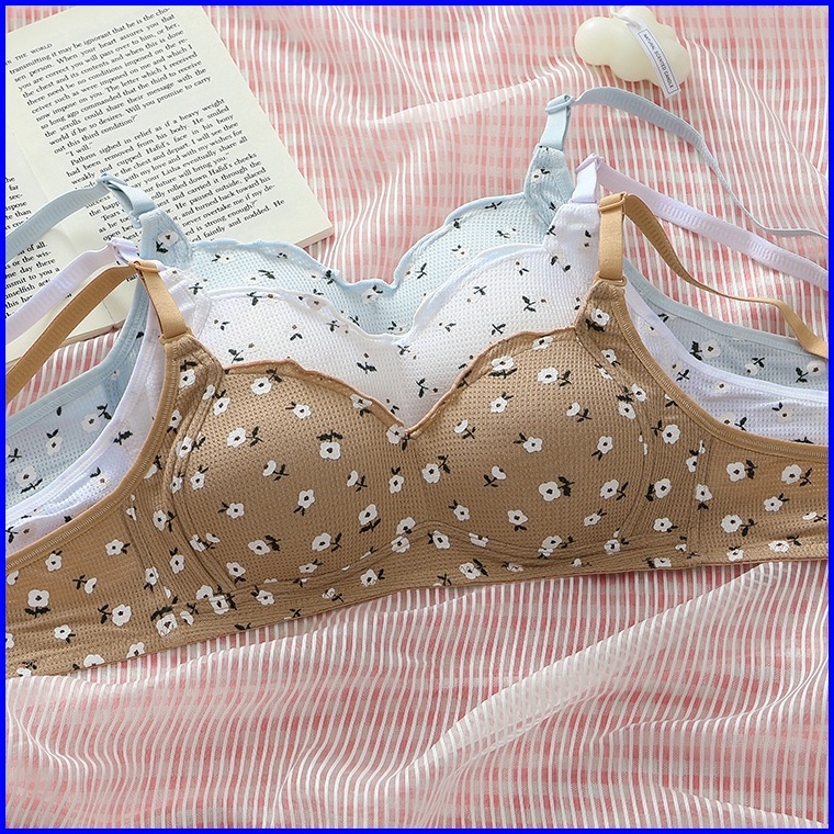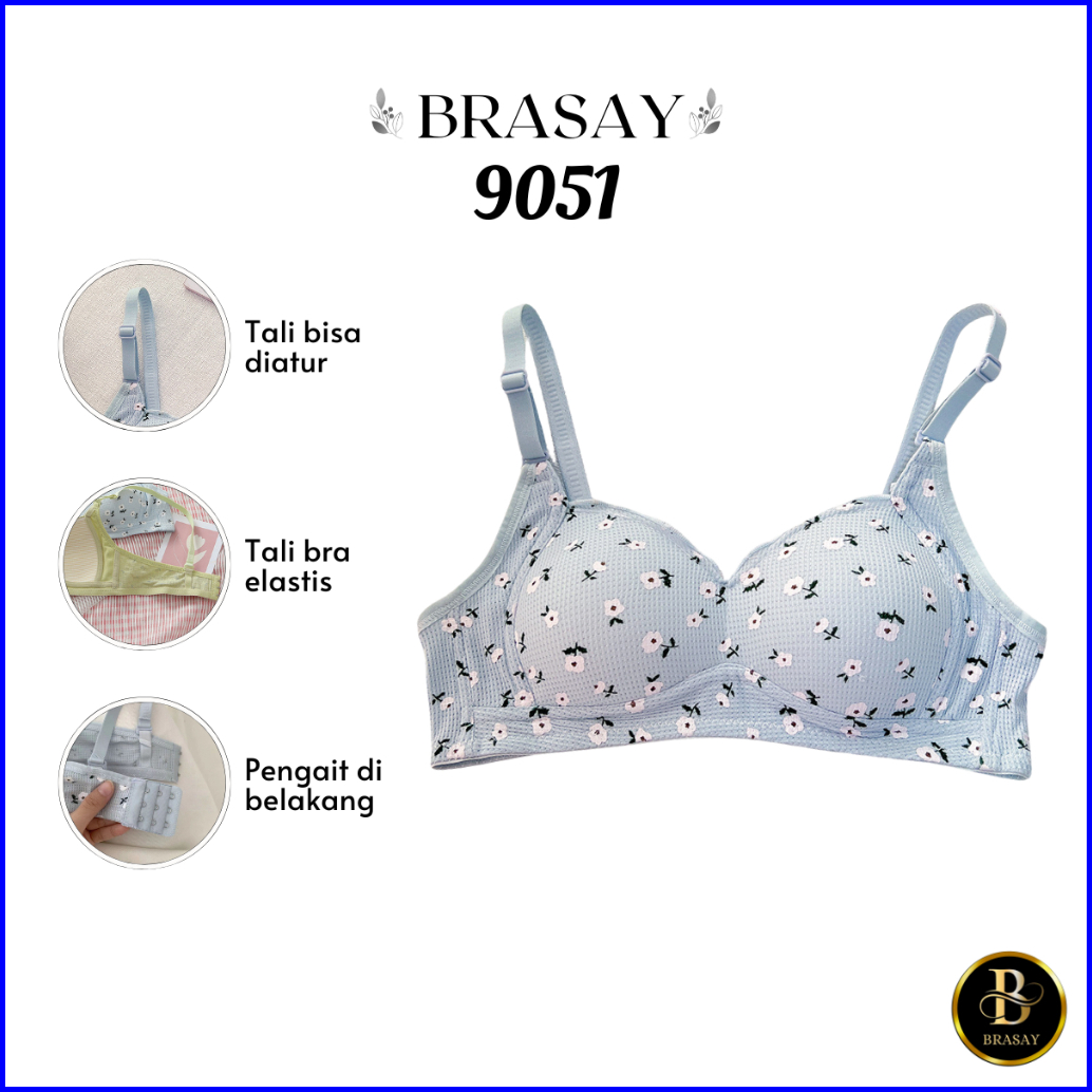Brasay Bra Push Up Wanita Motif Bunga Tanpa Kawat Wanita Korea Fashion Bralette Remaja 9051