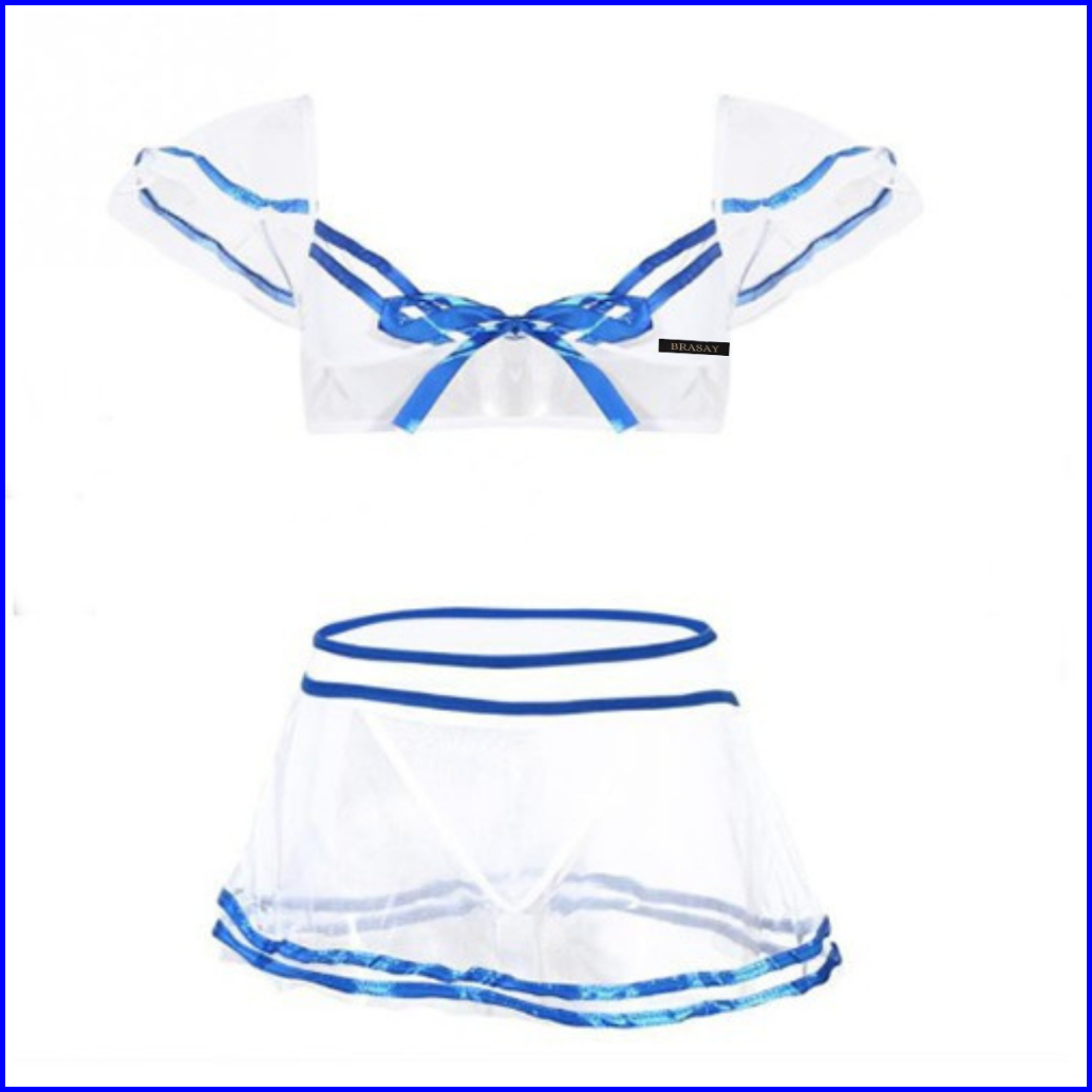 Brasay Set Baju Lingerie Rok G String Model Sailor Transparant 3061