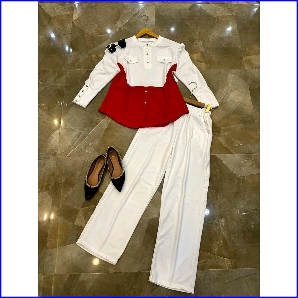 Vallina Outfit - Iriana Set Setelan Celana Wanita Muslim Matt Cringkle Airflow Premium Casual Daily