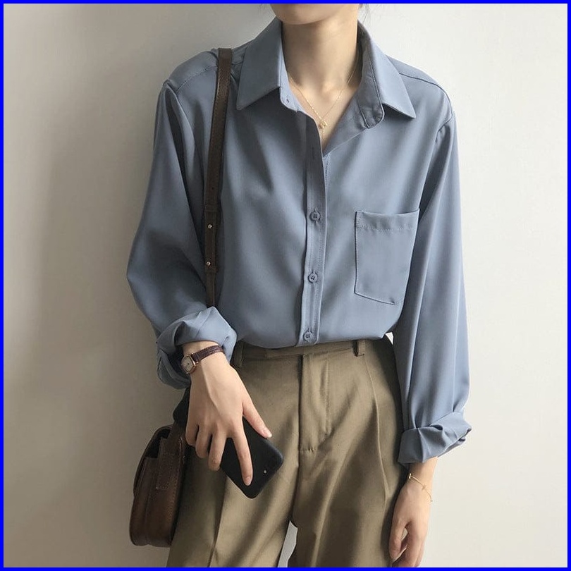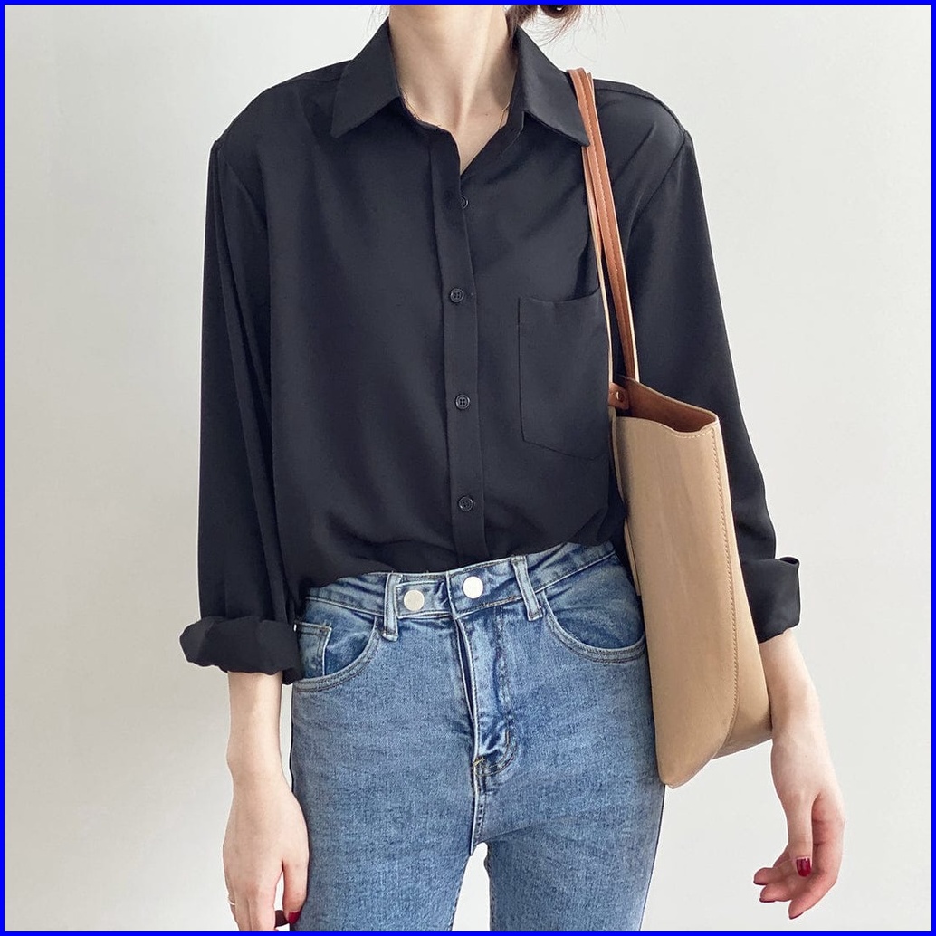 Vallina Odie Shirt Basic Kemeja Atasan Blouse Polos Wanita Kerja Korean Style Premium