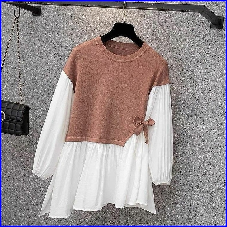 Vallina Outfit - Konina Top Blouse Two Tone Premium Atasan Sweatshirt Remaja Wanita Muslim Korean Style