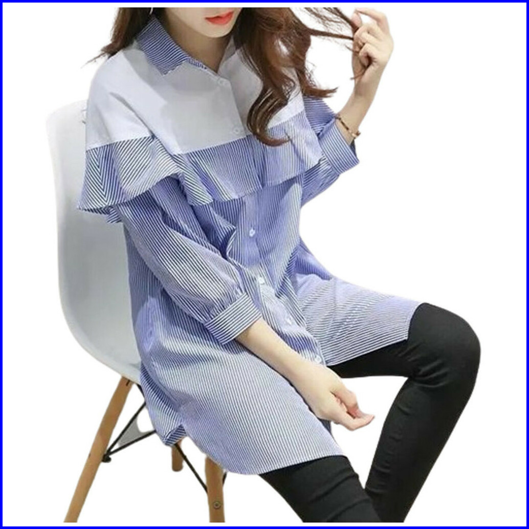 Vallina Outfit - Denia Top Atasan Salur Oversize Wanita Muslim Matt Katun Premium Casual Daily