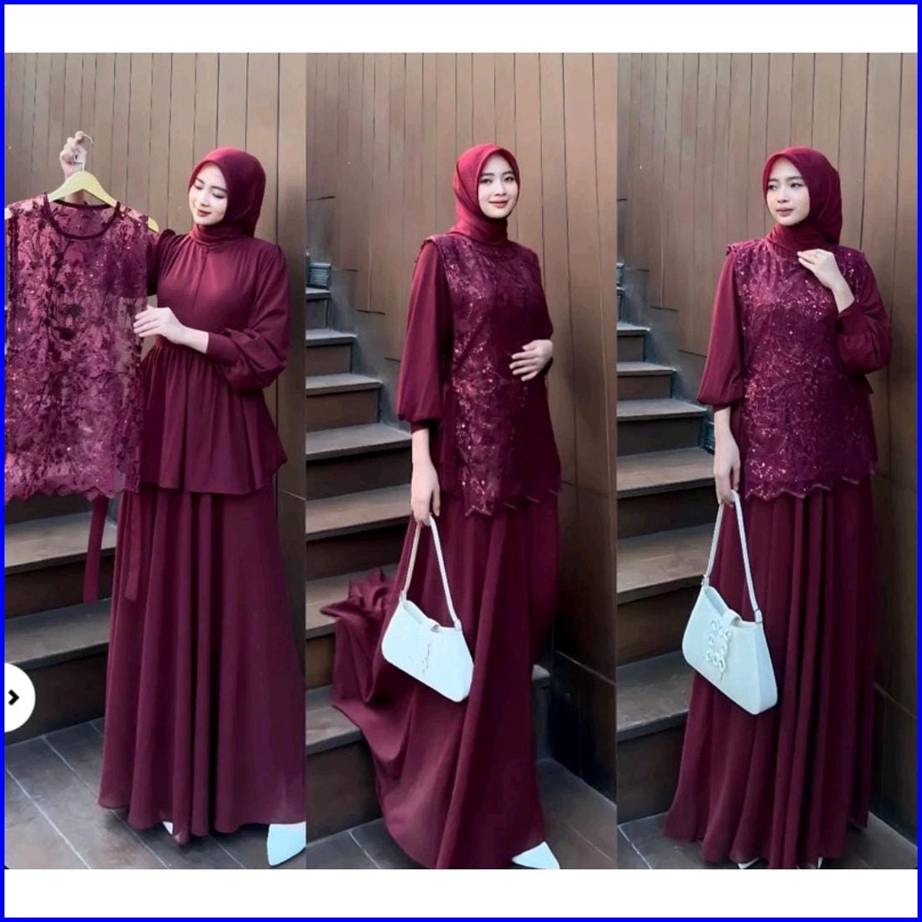 Vallina Outfit - Cintya Maxy Dress Set Vest Brokat Premium Gamis Wanita Muslim Pesta Kondangan Modern M - Xl