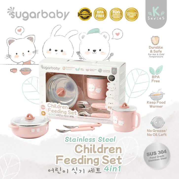 SUGAR BABY STAINLESS STEEL CHILDREN FEEDING SET 4IN1 (K-SERIES) SET ALAT MAKAN ANAK 12M+