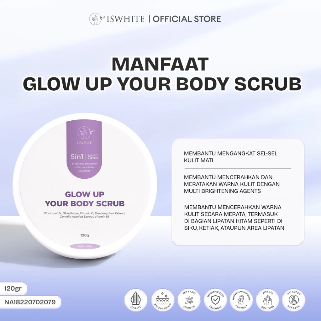 ISWHITE Glow Up Your Body Scrub 120gr - Scrub Badan - Lulur Brightening Exfoliator dengan Microscrub