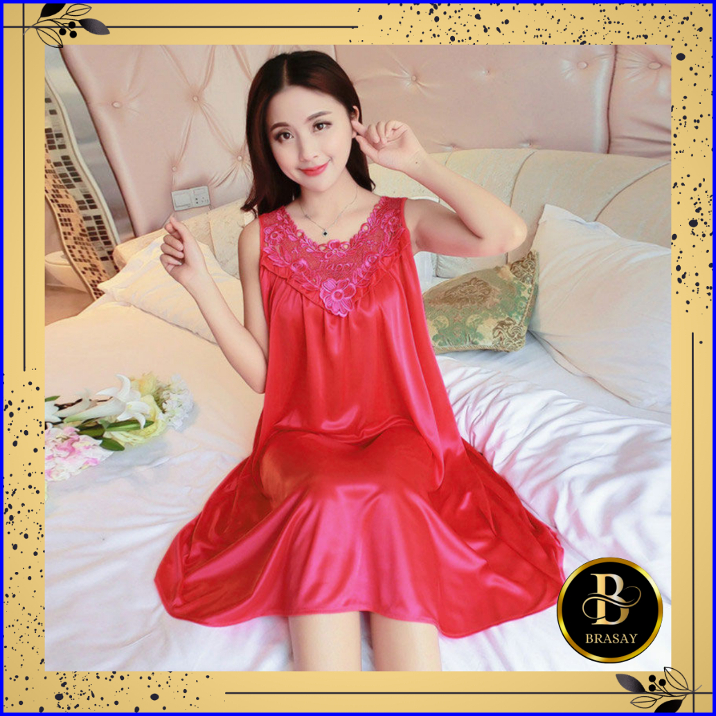 Brasay Baju Tidur Pakaian Wanita Lingerie Dress Wanita Bahan Sutra 4002