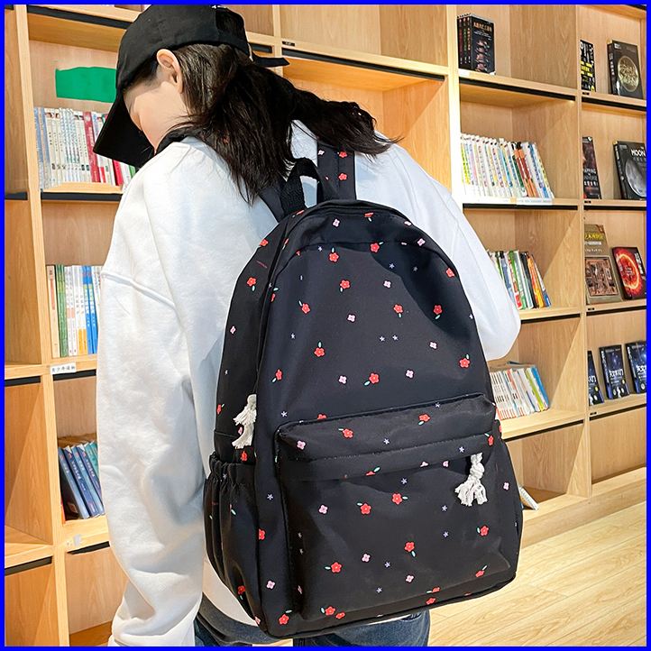 Hayden Flowwy Bag Ransel Hitam Putih Kuliah Flower Sekolah Backpack Motif Bunga Tas Polos Bahan Tebal - Hyb1q