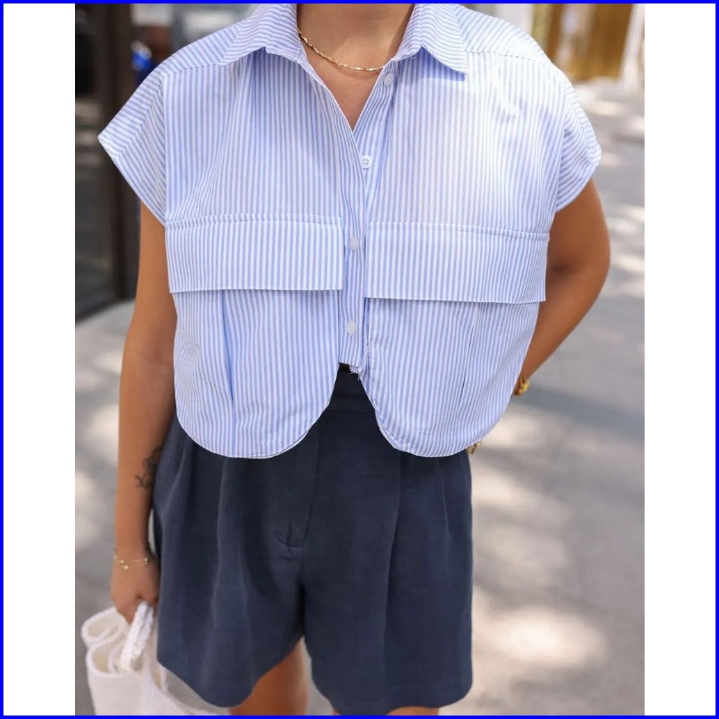 Vallina Outfit - Bolala Crop Top Bloused Korean Atasan Shirt Sleeve Less Remaja Wanita Premium
