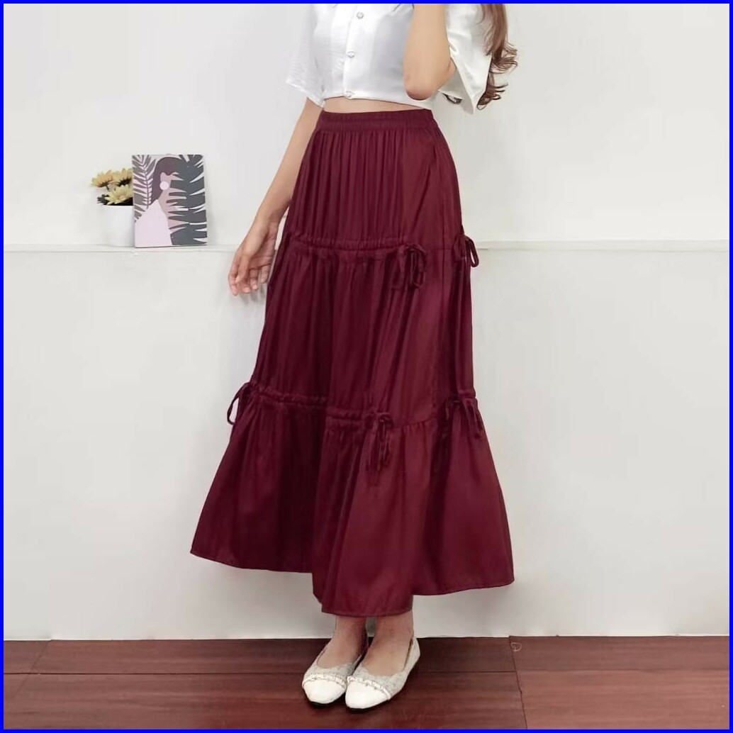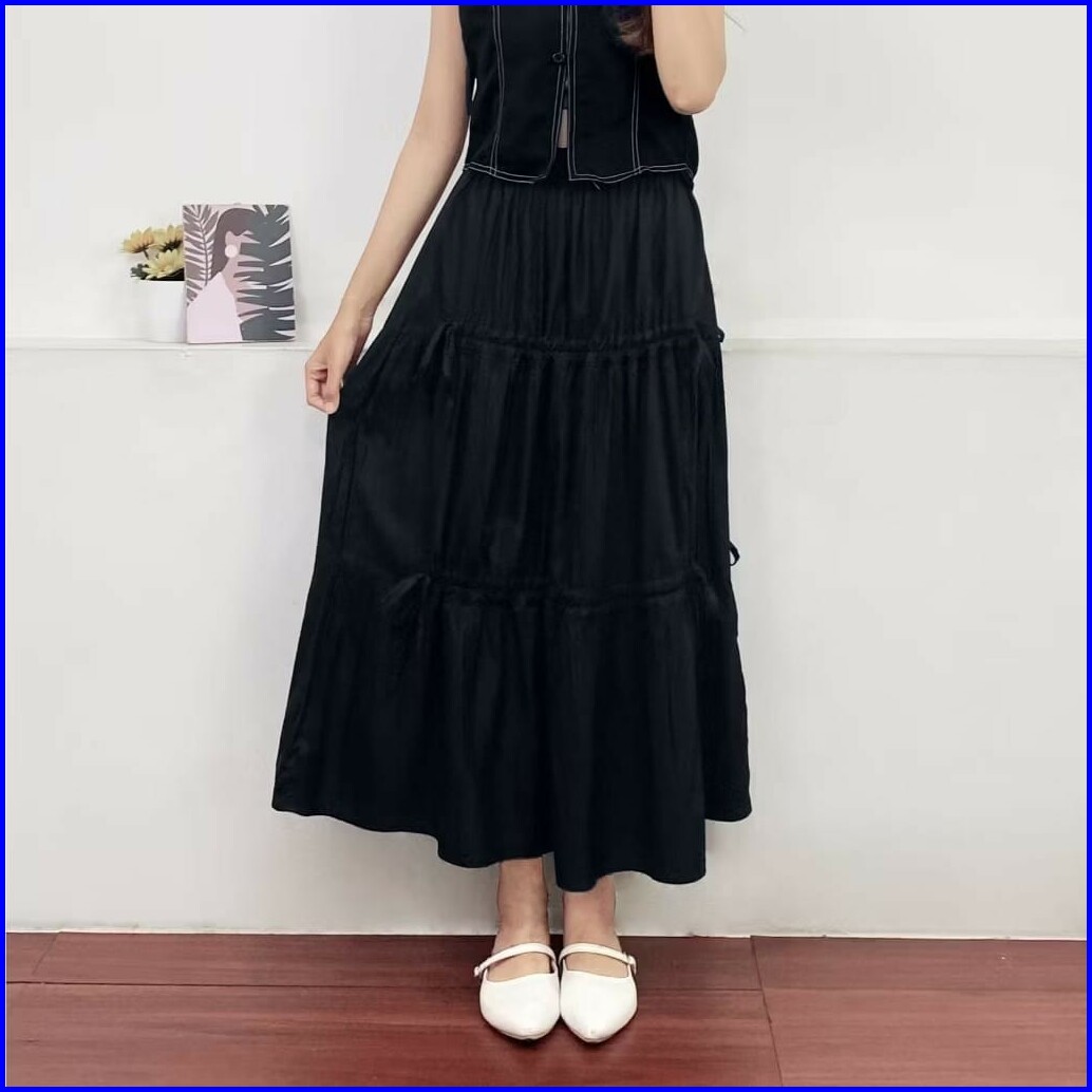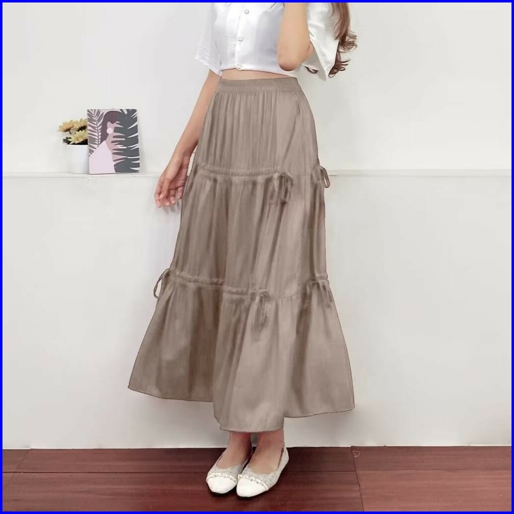 Vallina Outfit - Kawai Skirt Bawahan Cringkle Polos Apk Pita Premium Ootd Korean Style Casual Daily