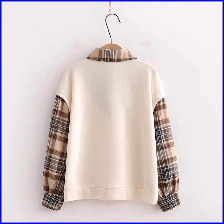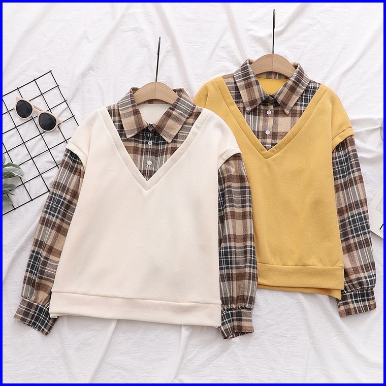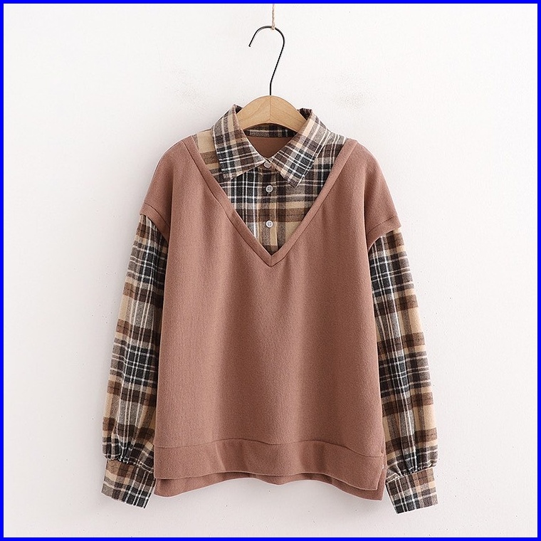 Vallina Kimberly Flanel Blouse Combi Fold Terry Shirt Atasan Kemeja Flannel Top Muslim Wanita Premium Korean Style
