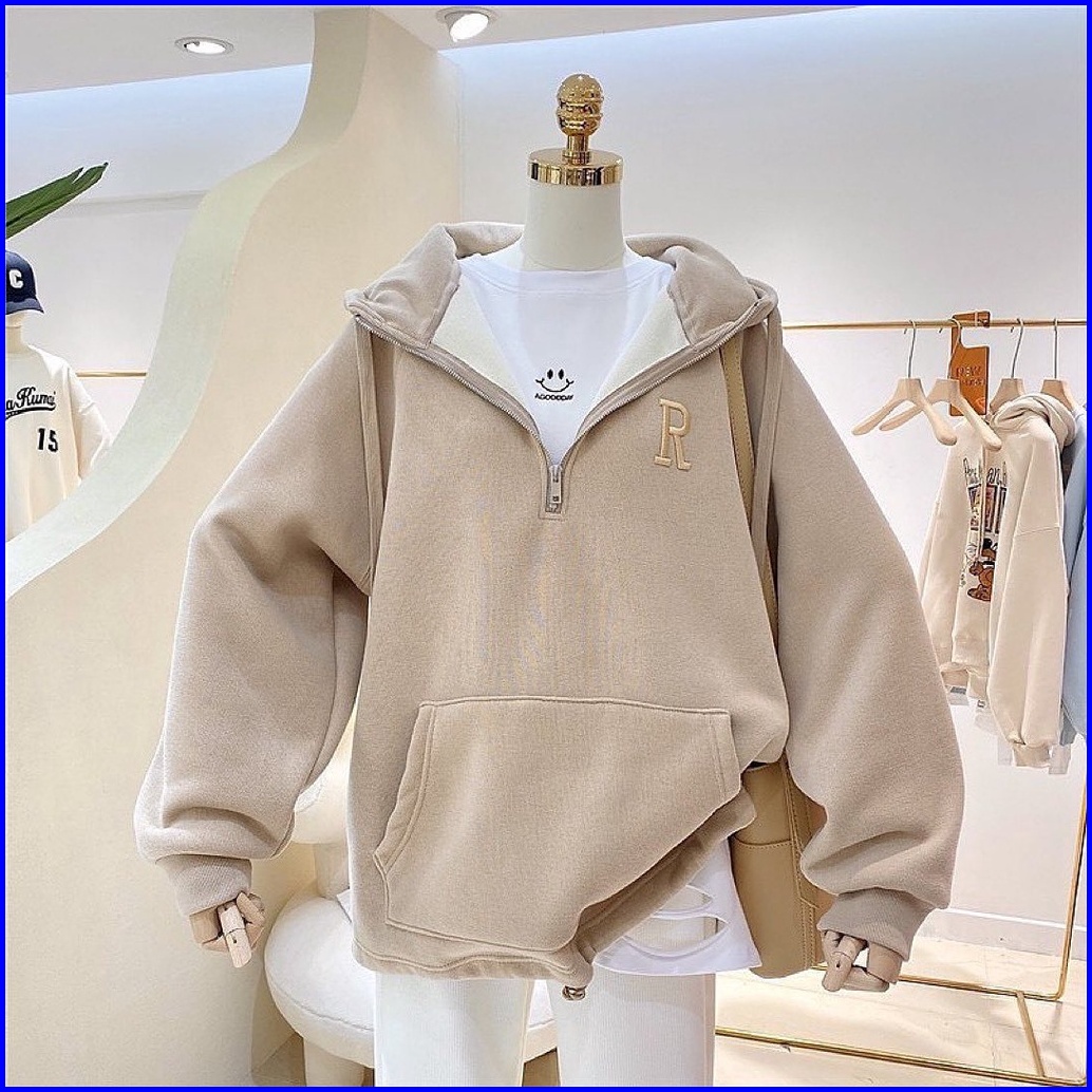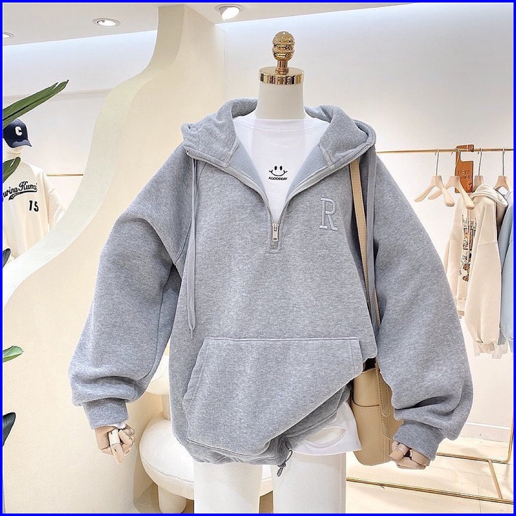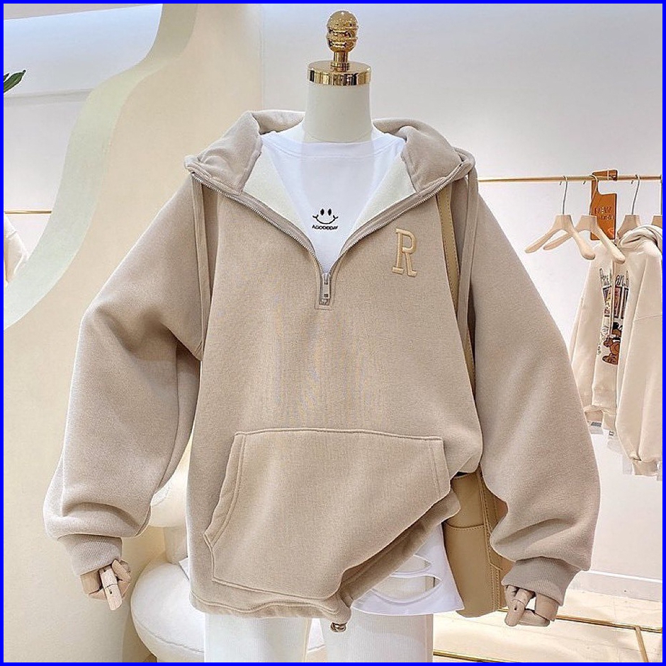 Vallina - R Bordier Half Zipper Sweater Hoodie Oversized Outerwear Remaja Wanita Korean Style Premium
