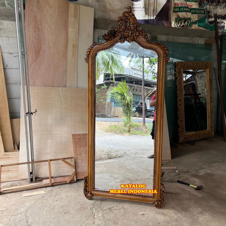 Cermin Kaca Standing FULL BODY Frame Kayu Jati Cermin Dinding Murah Cermin Full Body Motif Ukir