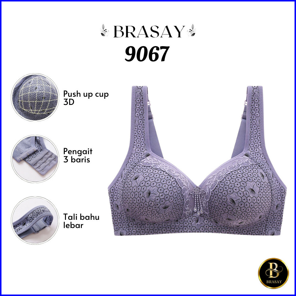 Brasay Bra Big Size Tanpa Kawat Motif Bunga Import Murah Bh Busa Tipis Size Besar Bra Jumbo 9067