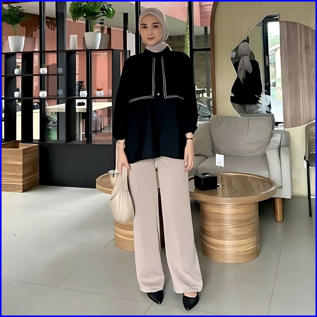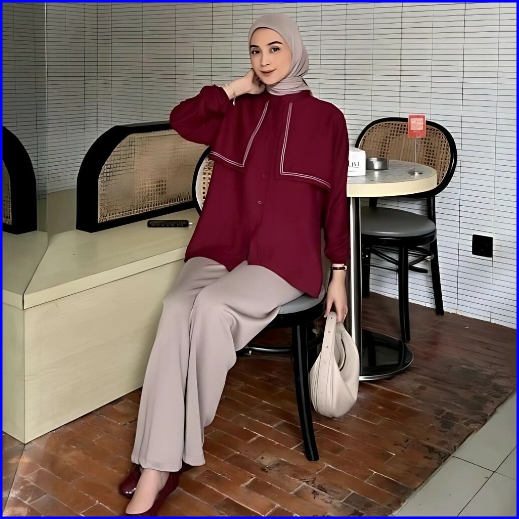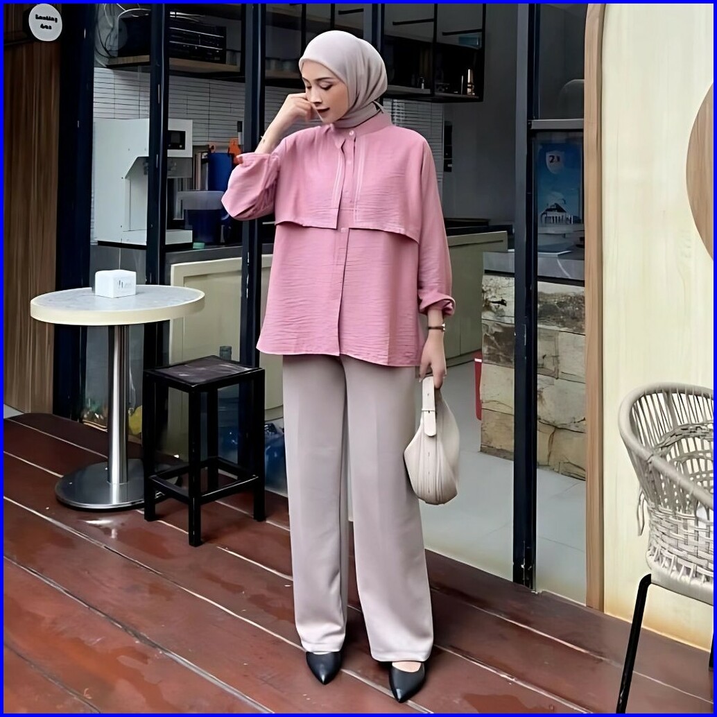 Vallina Outfit - Triana Blouse Shakila Layer Atasan Wanita Muslim Matt Cringkle Premium Ootd Kantoran L Casual Daily