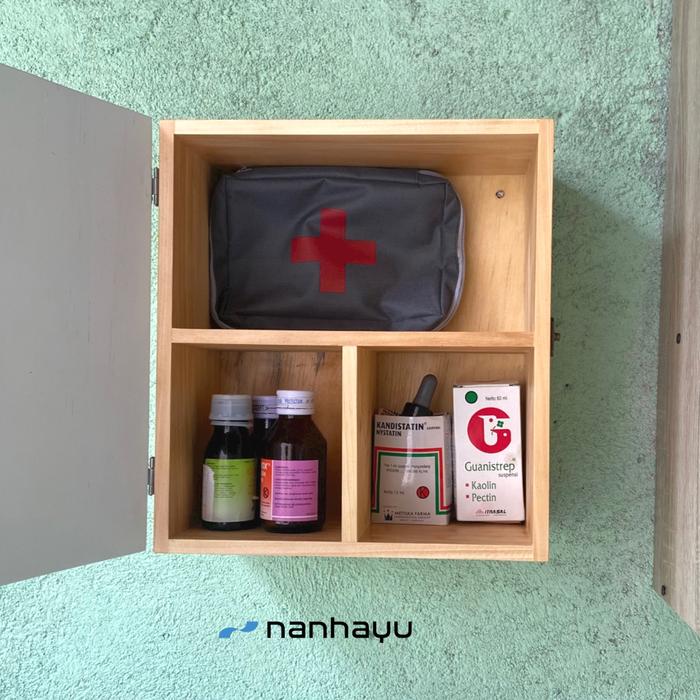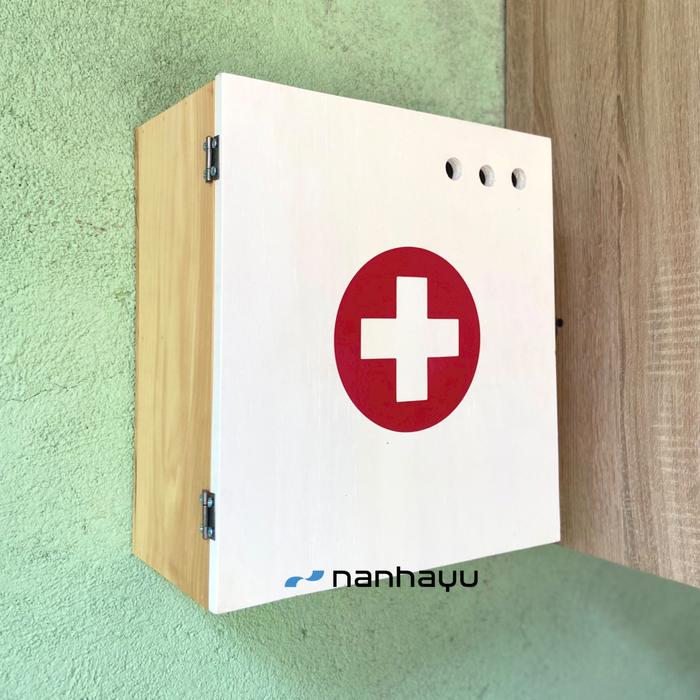 KOTAK OBAT P3K KAYU FIRST AID BOX DINDING LEMARI OBAT SERBAGUNA SIMBOL MERAH KECIL