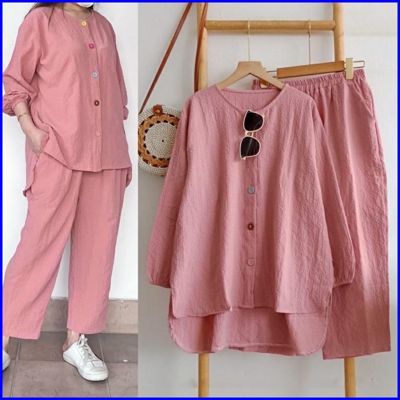 Vallina Outfit - Nikita One Set Baju Setelan Wanita Crinkle Premium Daily Casual Muslim Kekinian Terbaru