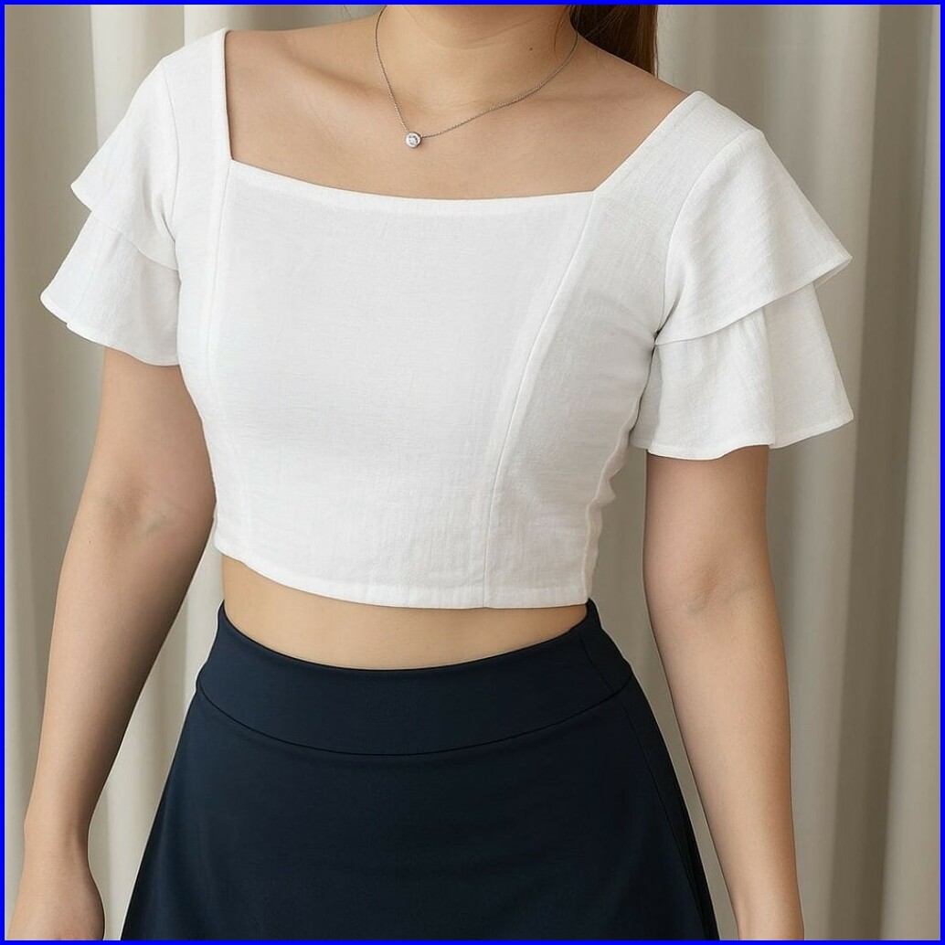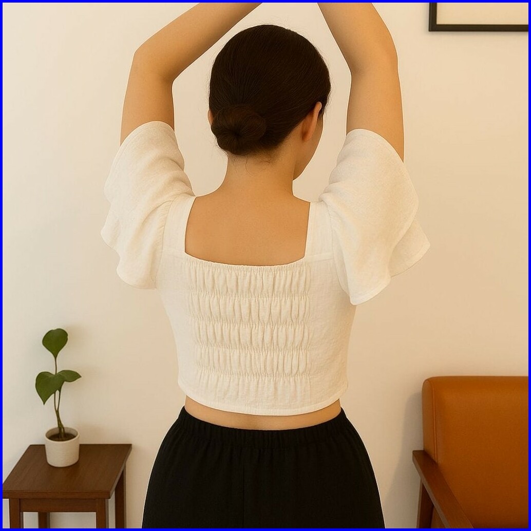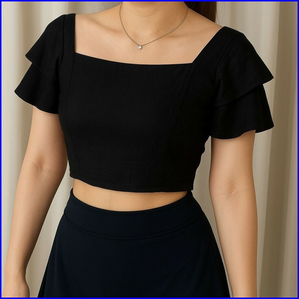 Vallina Outfit - Okta Crop Top Atasan Wanita Cringkle Premium Fit To L Ootd Korean Style Casual Daily