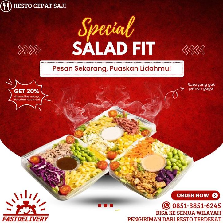 Happy Tuna Salad (Original), Rainbow Veggies Salad ( 290 Kcal ), Cheezy Champion Salad, Chikrab Salad, Beef Fewsilly Salad, Grilled Chicken Salad, New ! PotaBeef Salad, New ! Salmon Bean Salad (± 380 Kcal), Cheezy Champion Salad (± 390 Kcal), Custom Salad Bowl, Happy Tuna Salad (± 350 Kcal), Beef Fewsilly Salad (± 355 Kcal), Rainbow Veggies Salad (± 290 Kcal) - Vegetarian Me, Chikrab Salad (± 315 Kcal), Grilled Chicken Salad (± 330 Kcal), Japanese Tori Salad, Bundling Meaty Salad, Beef Fewsilly Salad + Teh Botol Sosro 330 ML, Grilled Chicken Salad + Teh Botol Sosro 330 ML, Sweetie Berry Overnight Oats, Banaberry Smoothie (250 ml), Extra Creamy Onion Salad Dressing, Extra Spicy Tomato Salad Dressing, Extra Japanese Soy Salad Dressing, Extra Roasted Sesame Salad Dressing (Vegetarian Fr, Extra Thousand Island Salad Dressing, Extra Soy Vinegar Salad Dressing (ranch), Extra Fresh Thyme Salad Dressing, Extra Creamy Mustard Salad Dressing, Extra White Cheesy Salad Dressing, Wheat Croutons, Tempe Chips, Spoon 2 in 1, Aqua 600 ML, Teh Botol Sosro (330 ml)