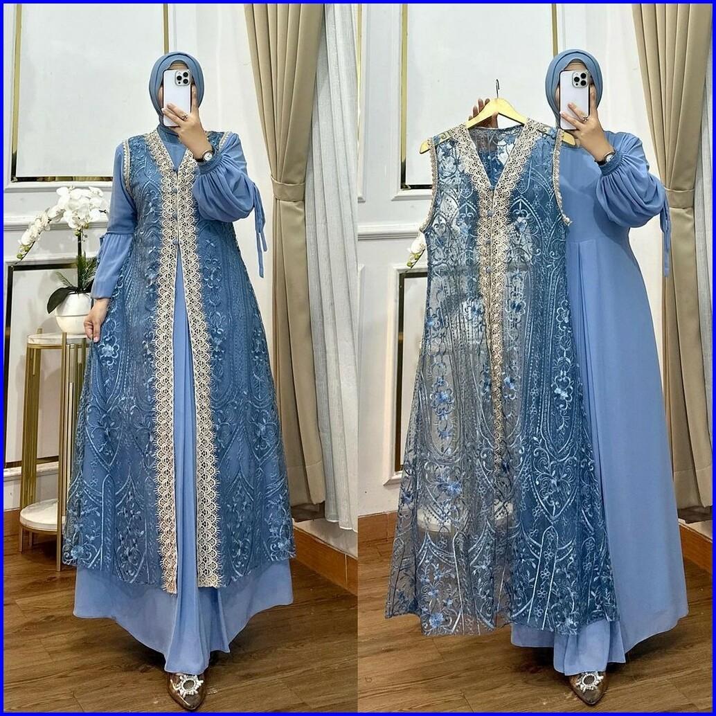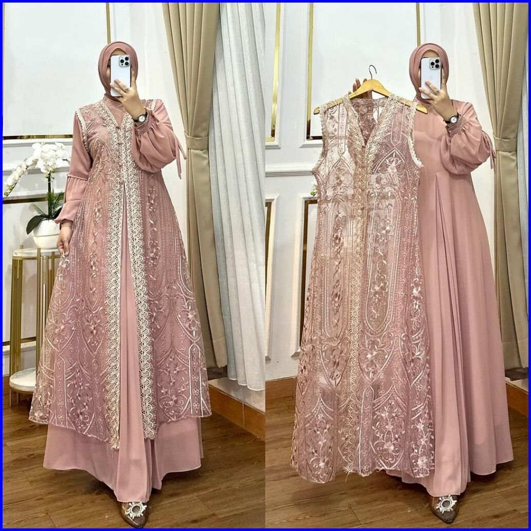 Vallina Outfit - Naura Maxy Gamis Muslim Wanita Matt Ceruty Babydoll Mix Brukat Ootd Pesta Kondangan