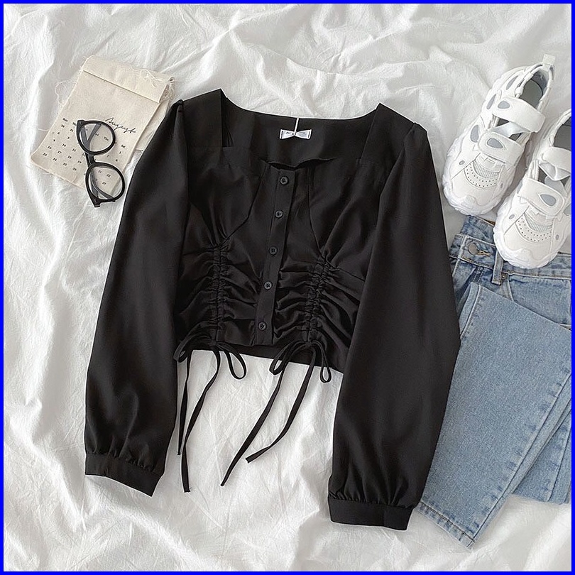 Vallina Outfit - Colyn Top Blouse Drawsting Croped Atasan Korean Remaja Wanita Premium