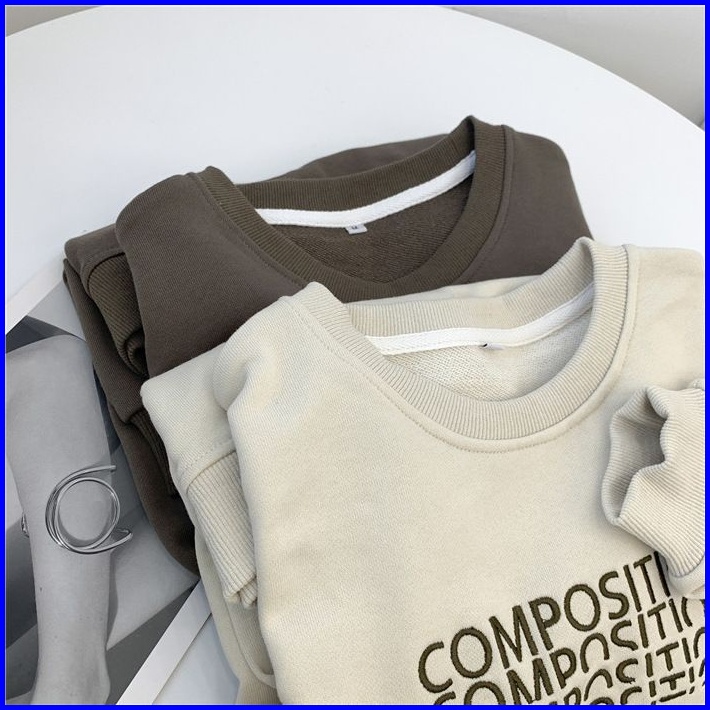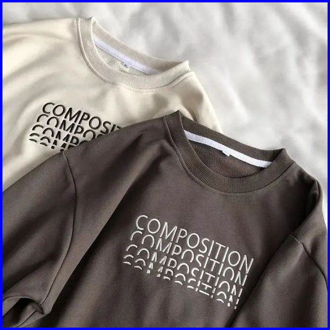 Vallina - Composition Sweater Crewneck Basic Unisex Wanita Pria Korean Style Premium