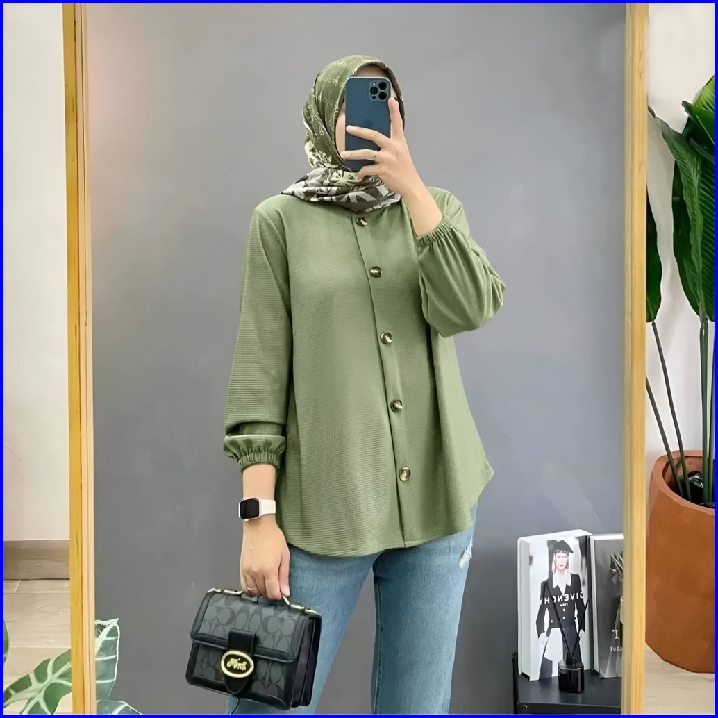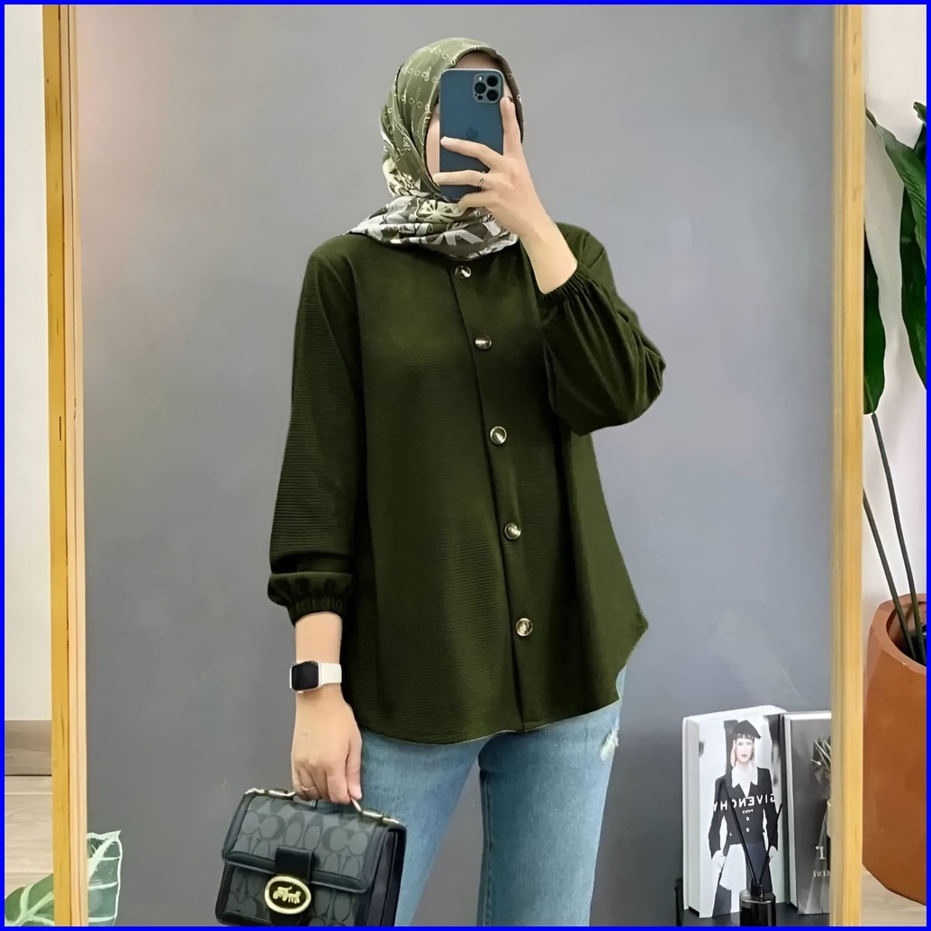 Vallina Outfit - Devanca Shirt Atasan Kemeja Blouse Kantoran Wanita Muslim Premium Airflow Crinkle Fit Xl