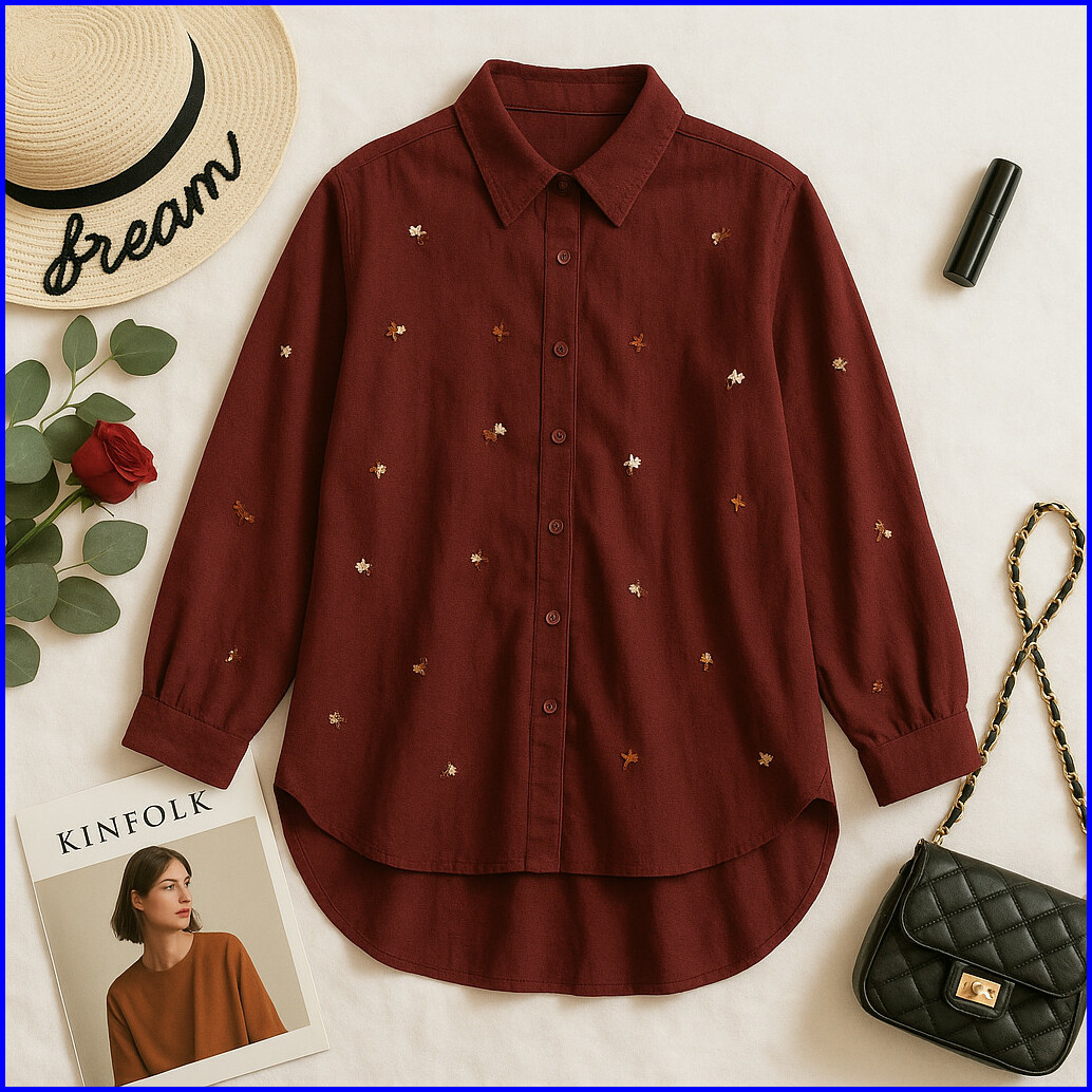 Vallina Outfit - Basic Blouse Atasan Kemeja Oversize Wanita Muslim Matt Linen Rami Ootd Korean Style