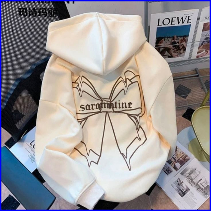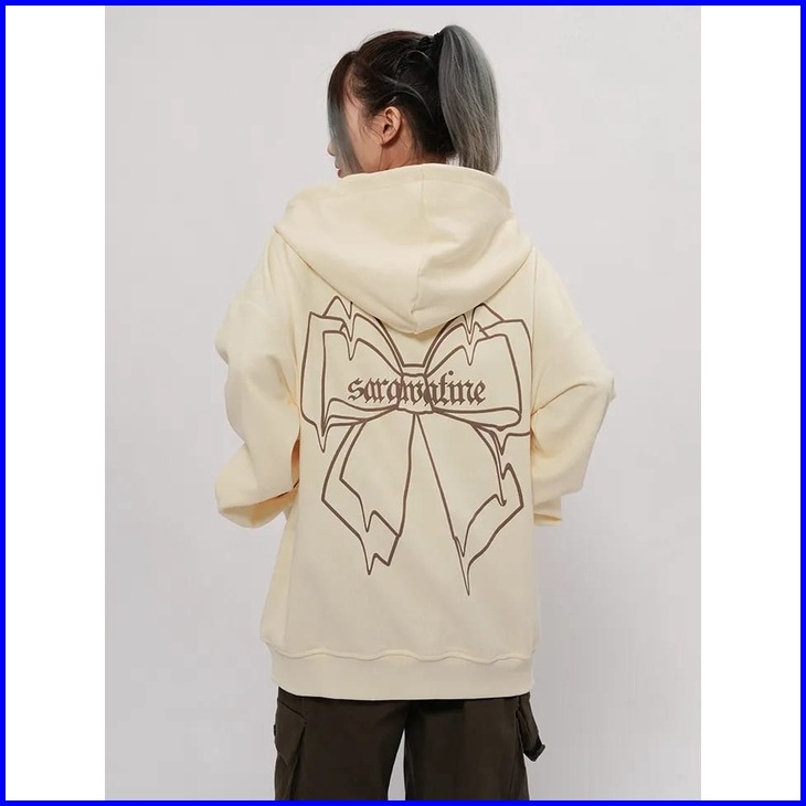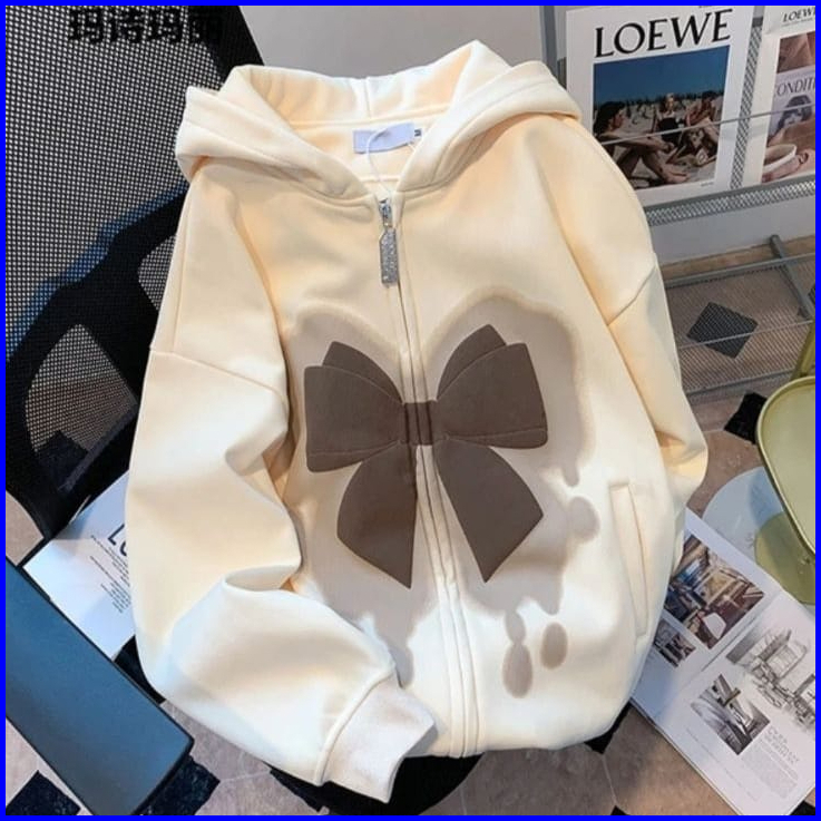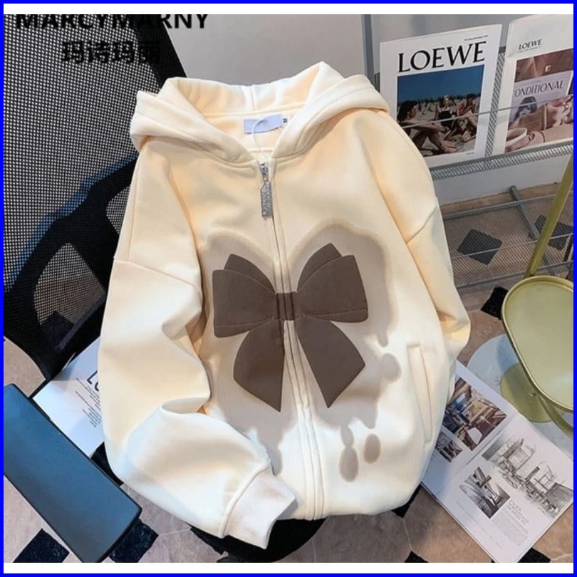 Vallina - Saramatine Ribbon Zip Hoodie Jacket Outerwear Remaja Wanita Korean Style Premium - Pita Samaratine