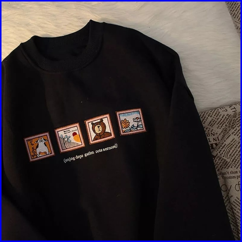 Vallina Enjog Dops Gation Sweater Crewneck Outerwear Wanita Korean Style