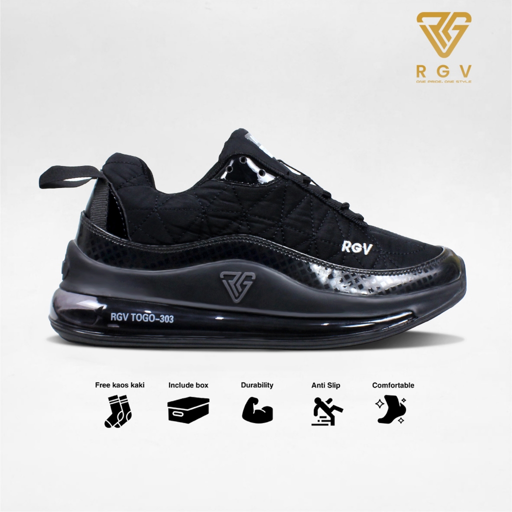 RGV 38 - 44 Sepatu Hitam Sneakers Pria dan Wanita Series TOGO 303 Full Black