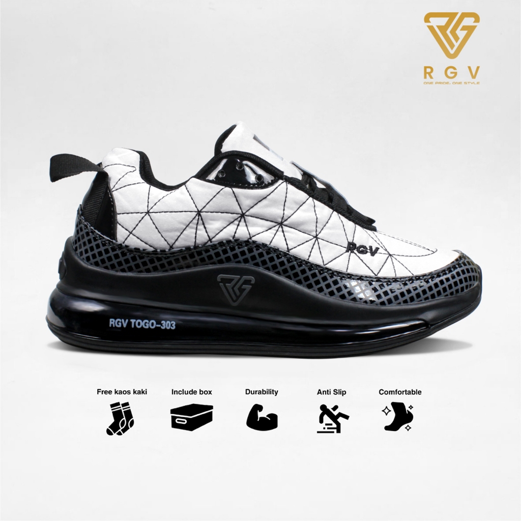 RGV 38 - 44 Sepatu Putih Sneakers Pria dan Wanita Series Togo 303 White Black