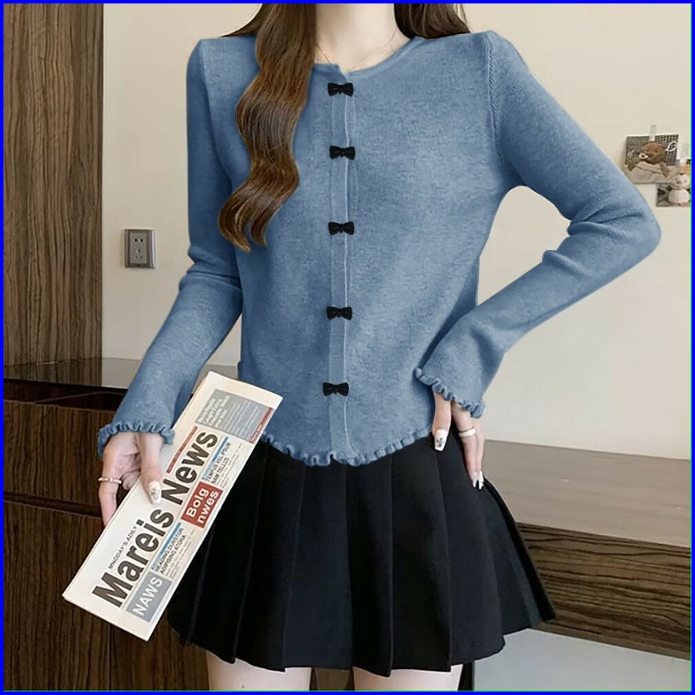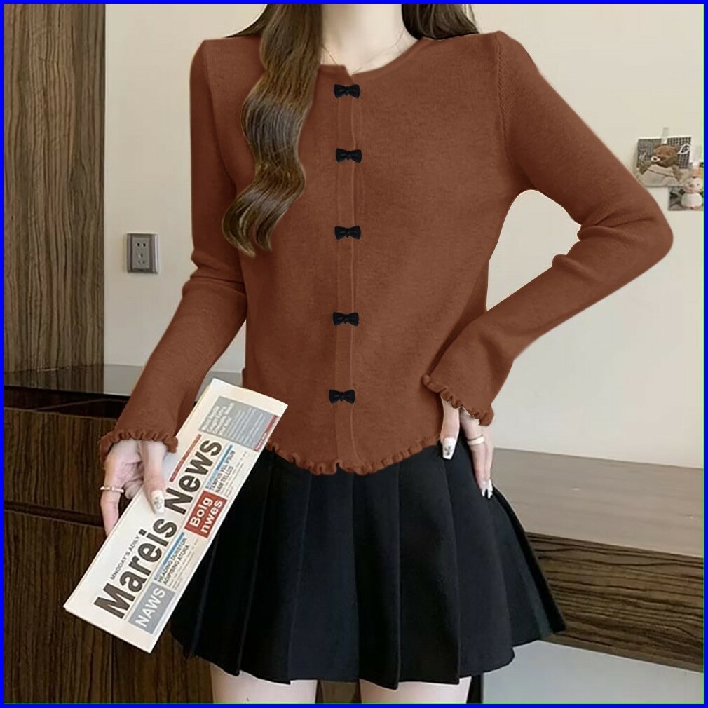 Vallina Outfit - Ribbonie Knit Premium Cardi Atasan Wanita Rajut 3d Aksesoris Pita Outerwear Cardigan Outer Wanita Remaj