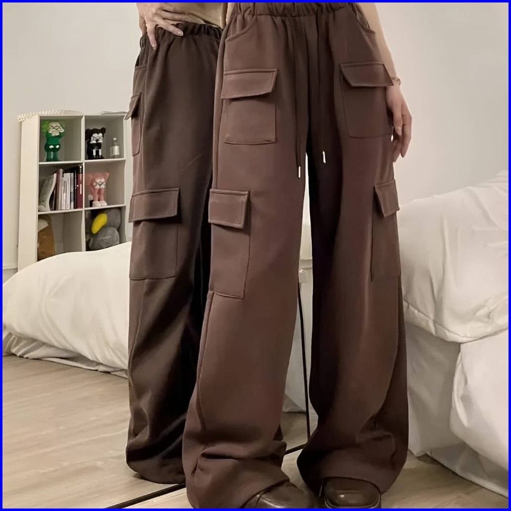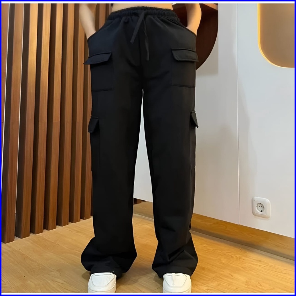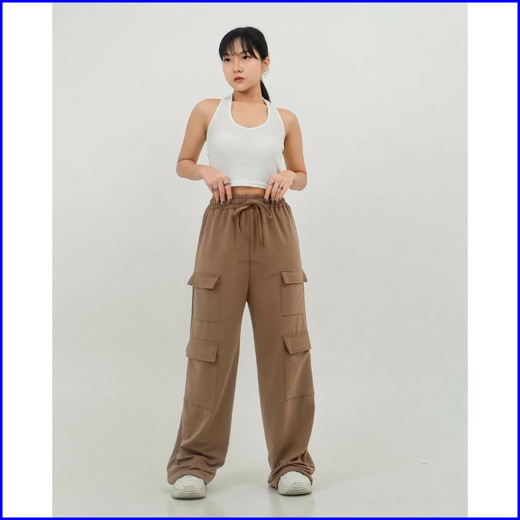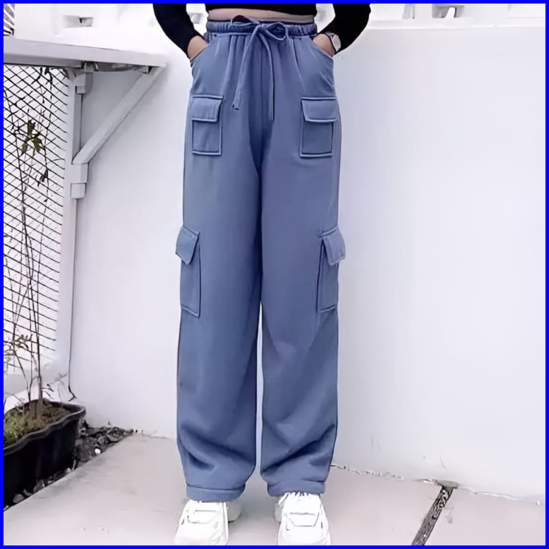 Vallina - Jooly Up Pant Cargo Celana Panjang Pocket Oversized Fleece Tebal Korean Remaja Wanita - Fuji Sweatpant