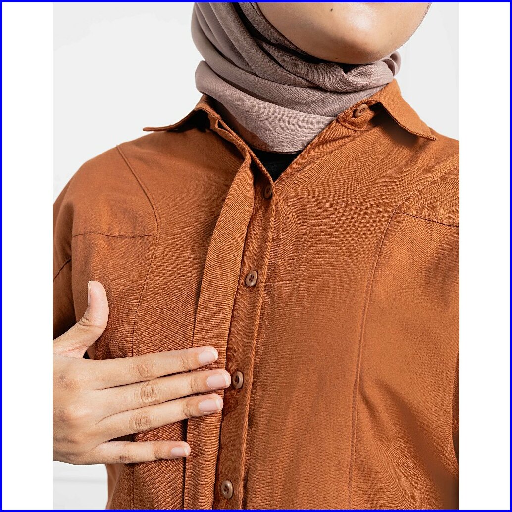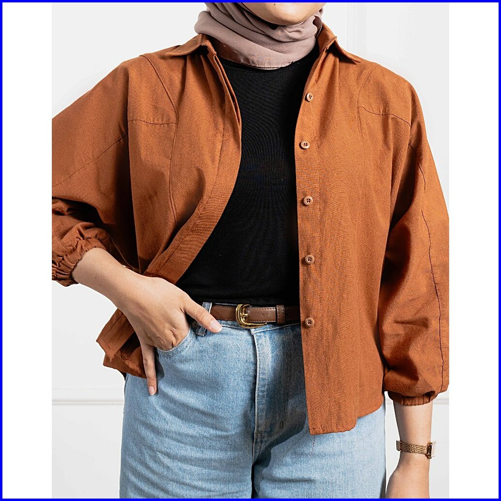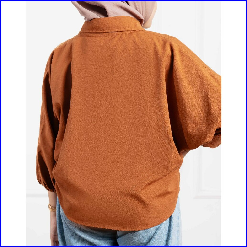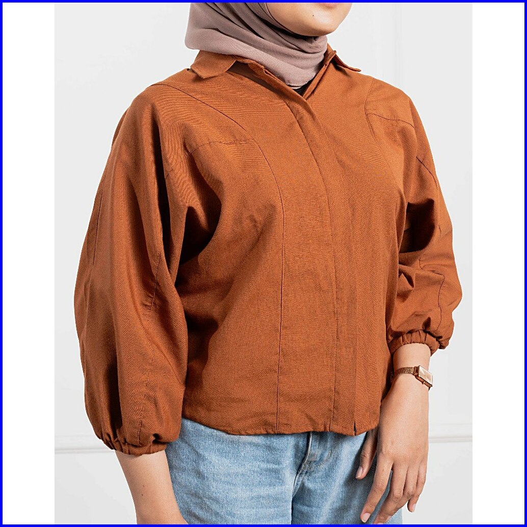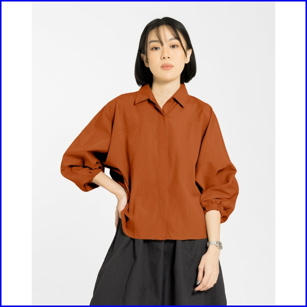 Malova Adelin Teracotta Kemeja Wanita Lengan Balon Kemeja Formal Bahan Katun Untuk Gaya Elegan